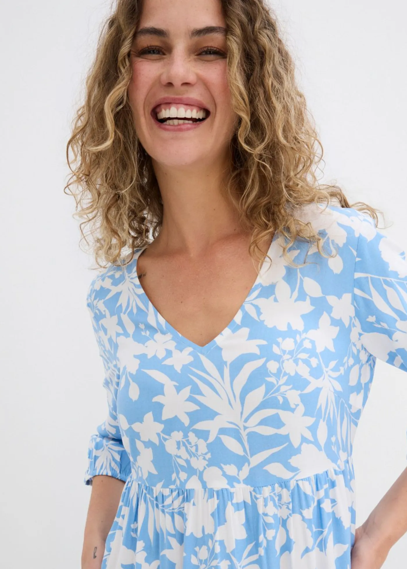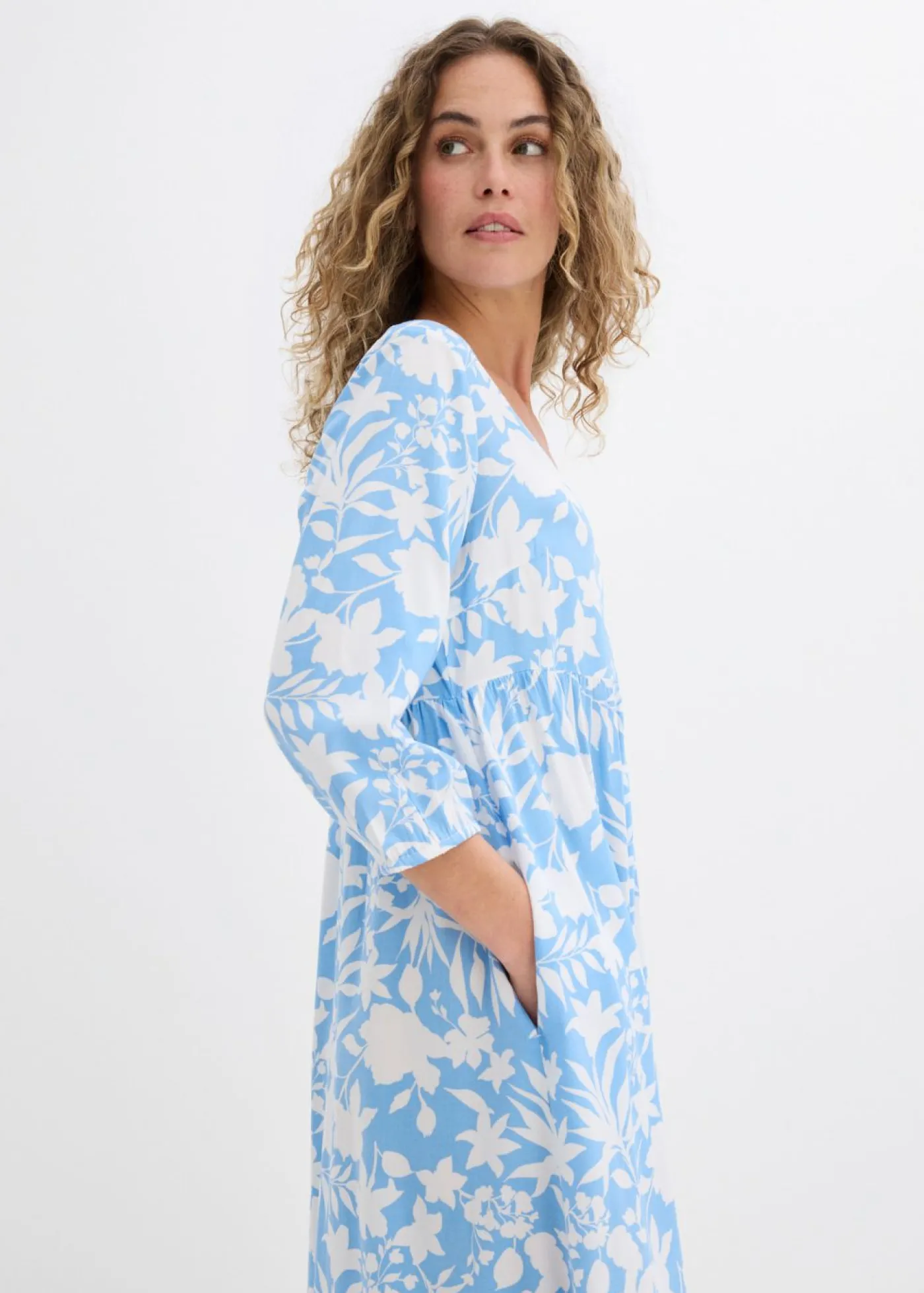 Vestido con bolsillos, escote acentuado y una ligera caída. Largo total de aprox. 114 cm en talla 42. Se puede lavar a máquina.