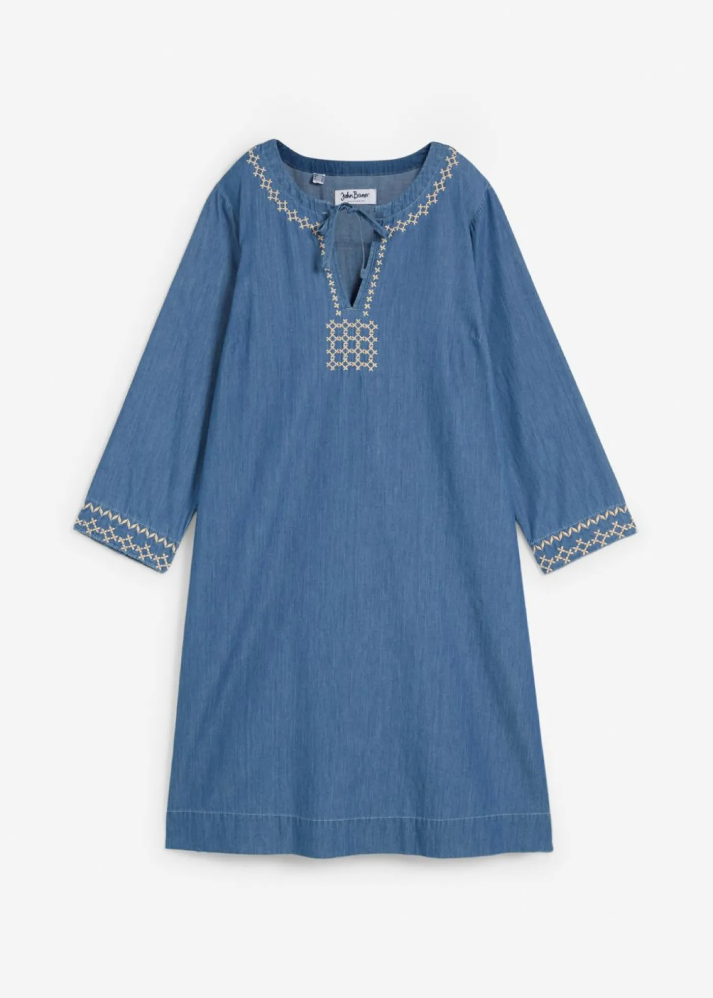 Vestido vaquero de corte holgado con bordado. Largo total de aprox. 100 cm en talla 42. Se puede lavar a máquina.