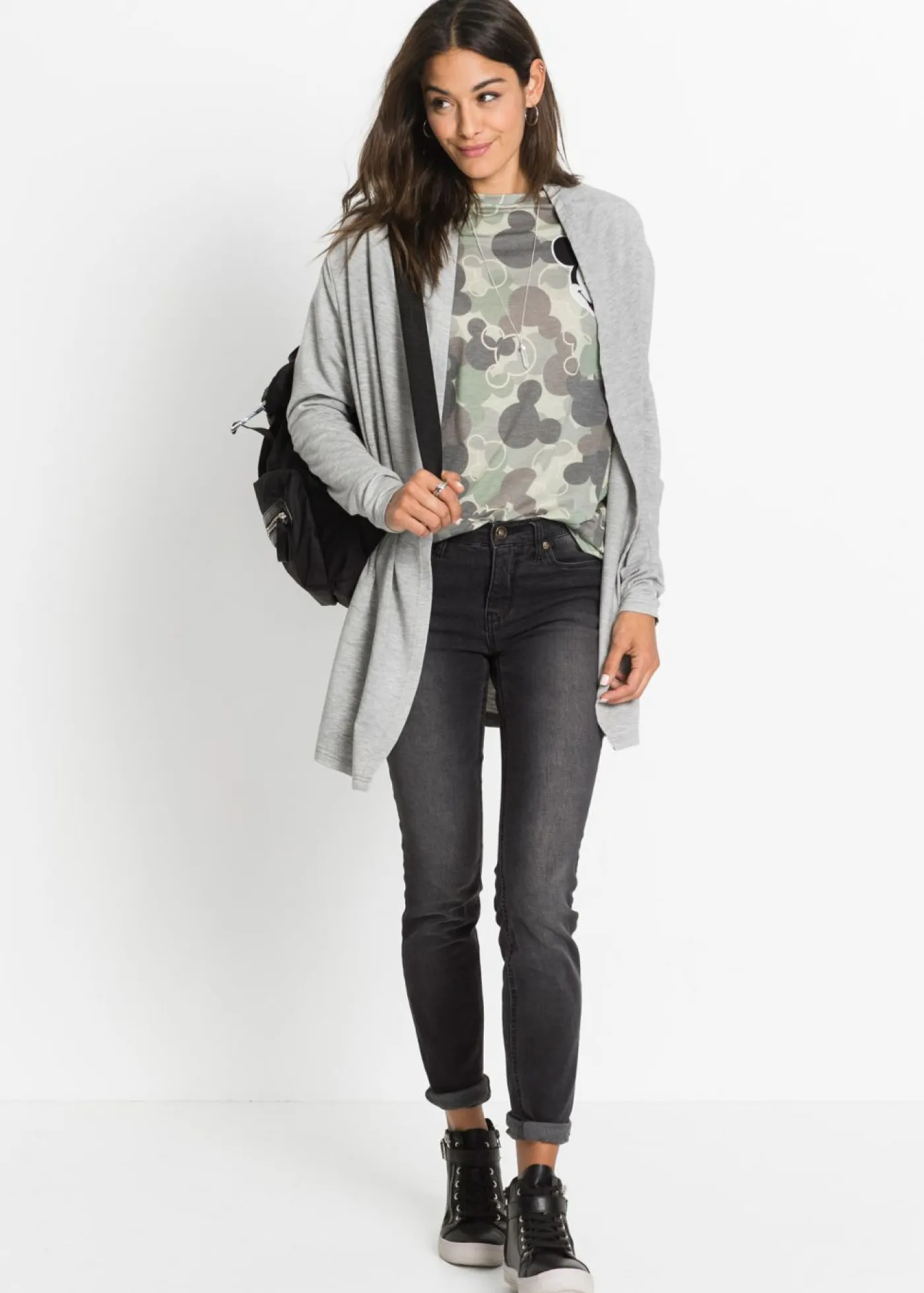 Camiseta con aplicación de Mickey Mouse de viscosa. Camiseta con aplicación de ratón y mangas cortas. Largo de 70 cm en la talla 40/42.
