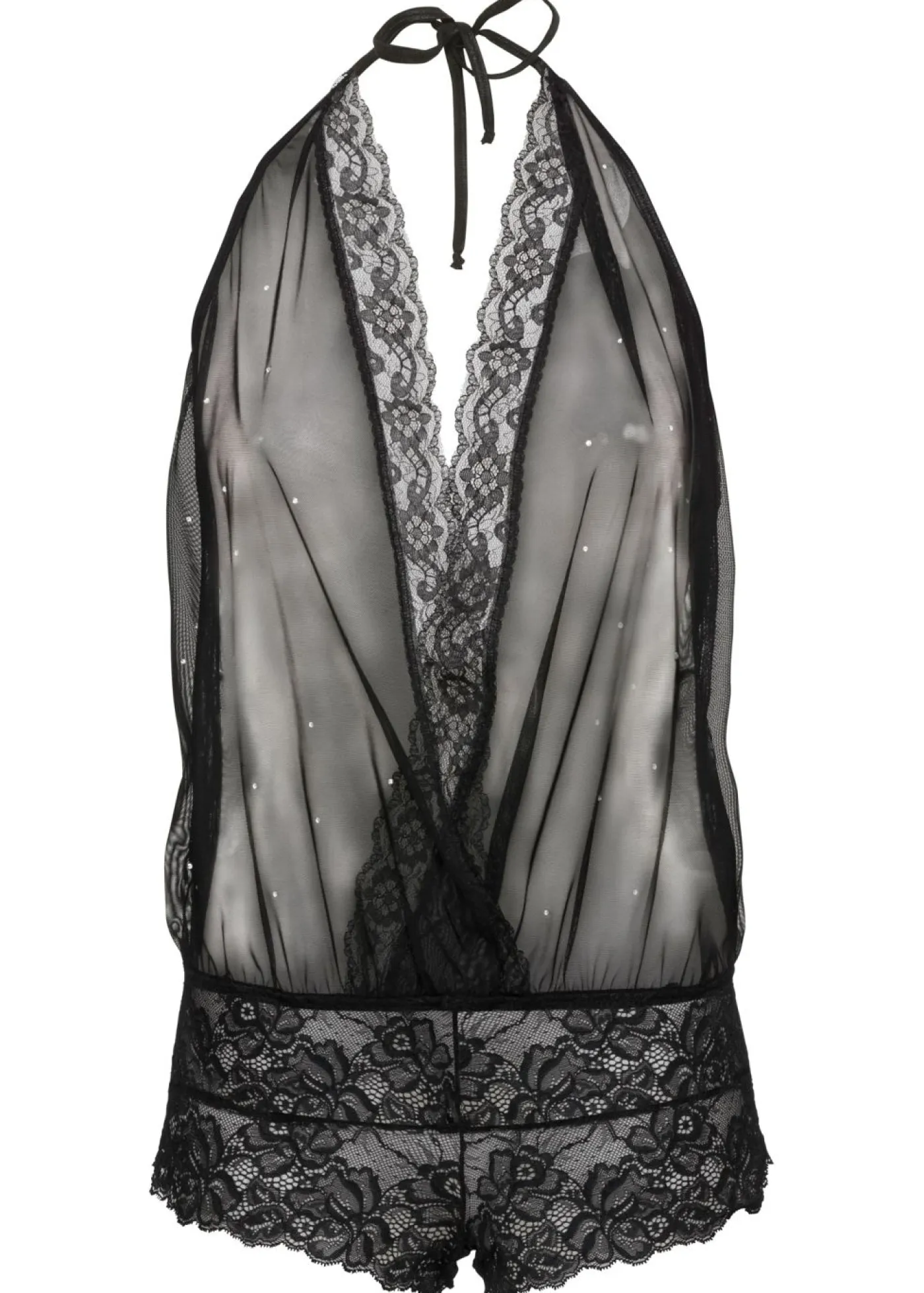 ¡Seducción sin límites! Este body con aberturas convence por la gran cantidad de detalles que lleva. El fino encaje decora su escote resaltándolo de una manera impresionante. Su material suave y transparente cubre sus curvas y deja entrever sus encantos. Unas pequeñas piedras de cristal completan el diseño de este magnífico body con abertura. Este body también está disponible en tallas grandes.