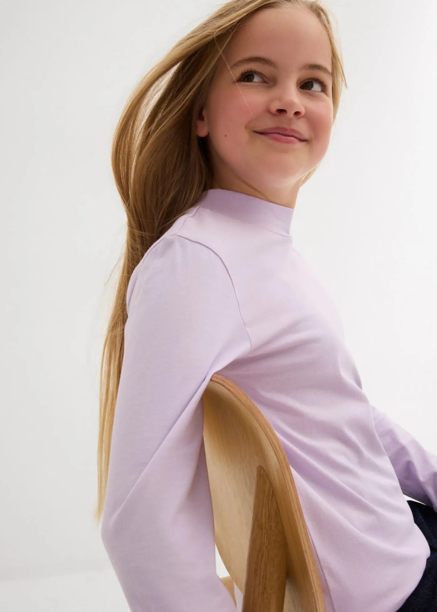 Bonitas camisetas sencillas de manga larga con cuello vuelto para niñas (2 unidades). Práctica camiseta básica de cuello vuelto para niñas (2 unidades). Perfecta para llevar debajo. Fácil de combinar.