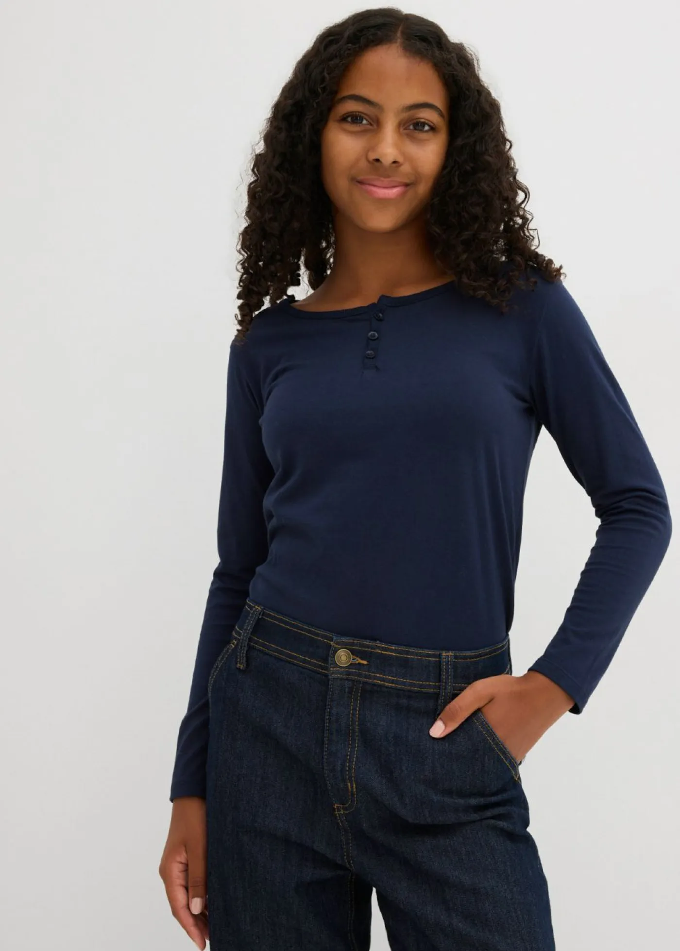 Cómoda camiseta de manga larga con botones en un práctico paquete doble.