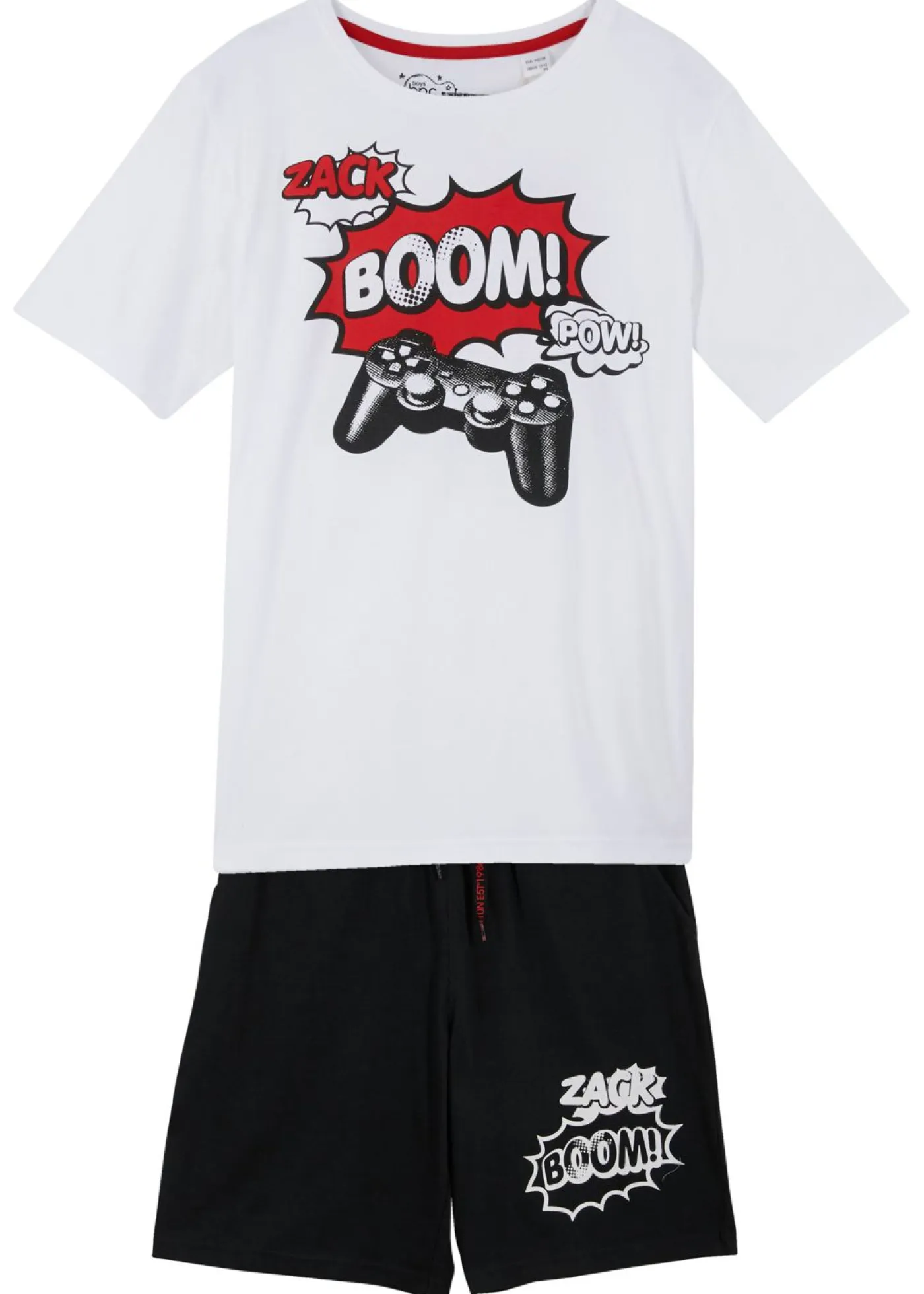 Camiseta y pantalón con estampado de videojuegos. Conjunto compuesto por camiseta con estampado XL y bermudas. El estampado de videojuegos en la camiseta y el pantalón corto aporta un toque moderno a este conjunto. El cordón en la cintura del pantalón permite ajustar la anchura con suma facilidad.