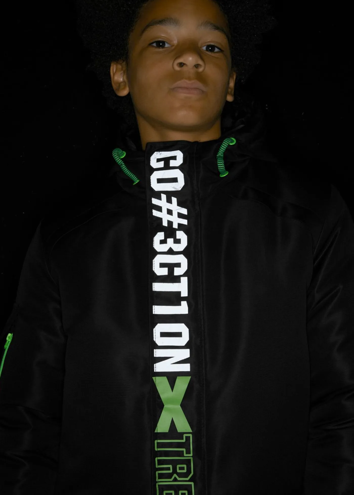 Moderna chaqueta de invierno con palabras estampadas para niños. Esta moderna chaqueta de invierno convence por sus detalles funcionales y su diseño en tendencia. Presenta una cremallera y bolsillos en la parte delantera. La capucha y los cierres de velcro para ajustar la anchura de las mangas protegen contra el viento y las inclemencias del tiempo. Destaca por las palabras estampadas en la parte delantera.
