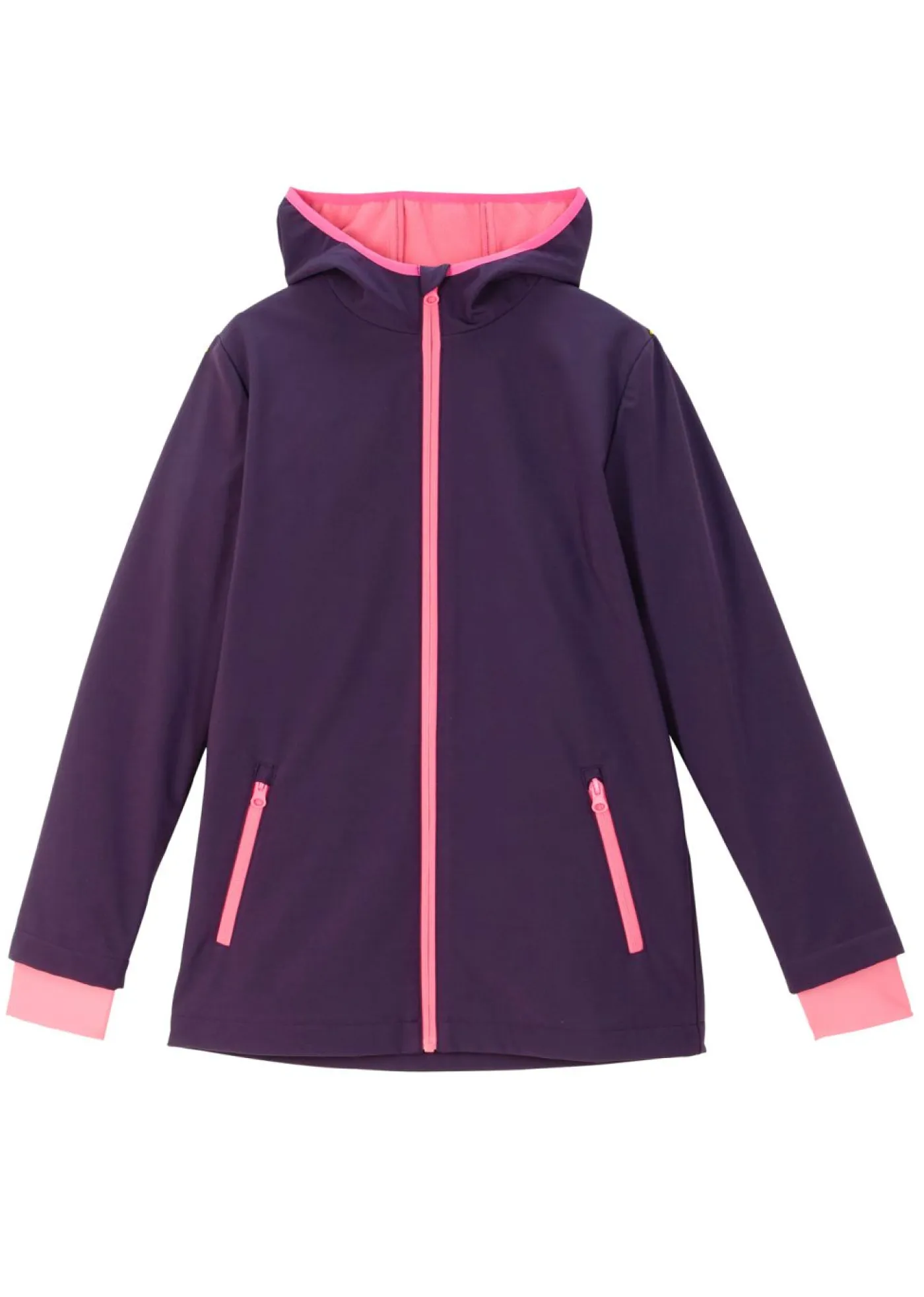 Elegante chaqueta softshell con cómodo forro polar, tejido repelente al agua y efecto cortavientos para niñas.
