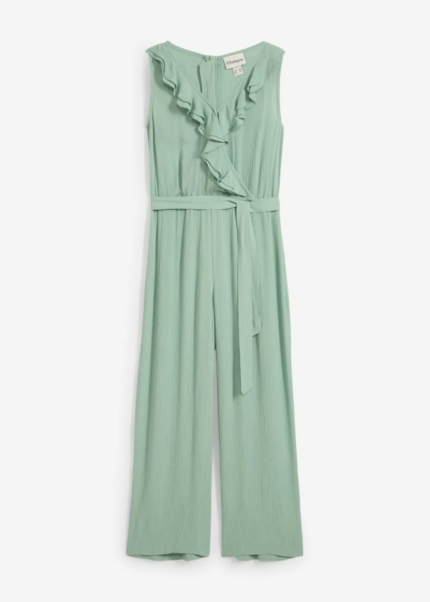 Elegante mono arrugado de estilo palazzo para niñas: escote en V con volantes, corte fluido, cinturón independiente: ¡un atuendo femenino para ocasiones especiales!