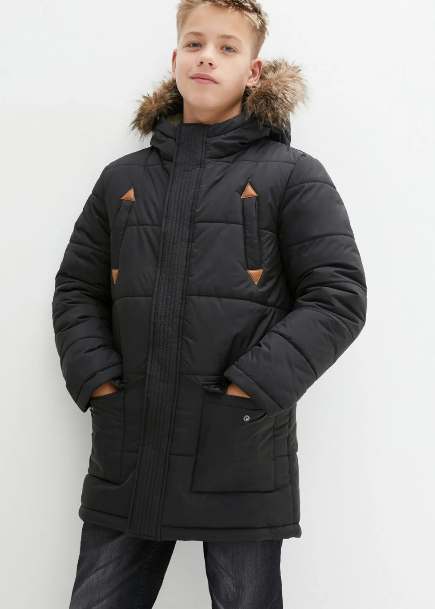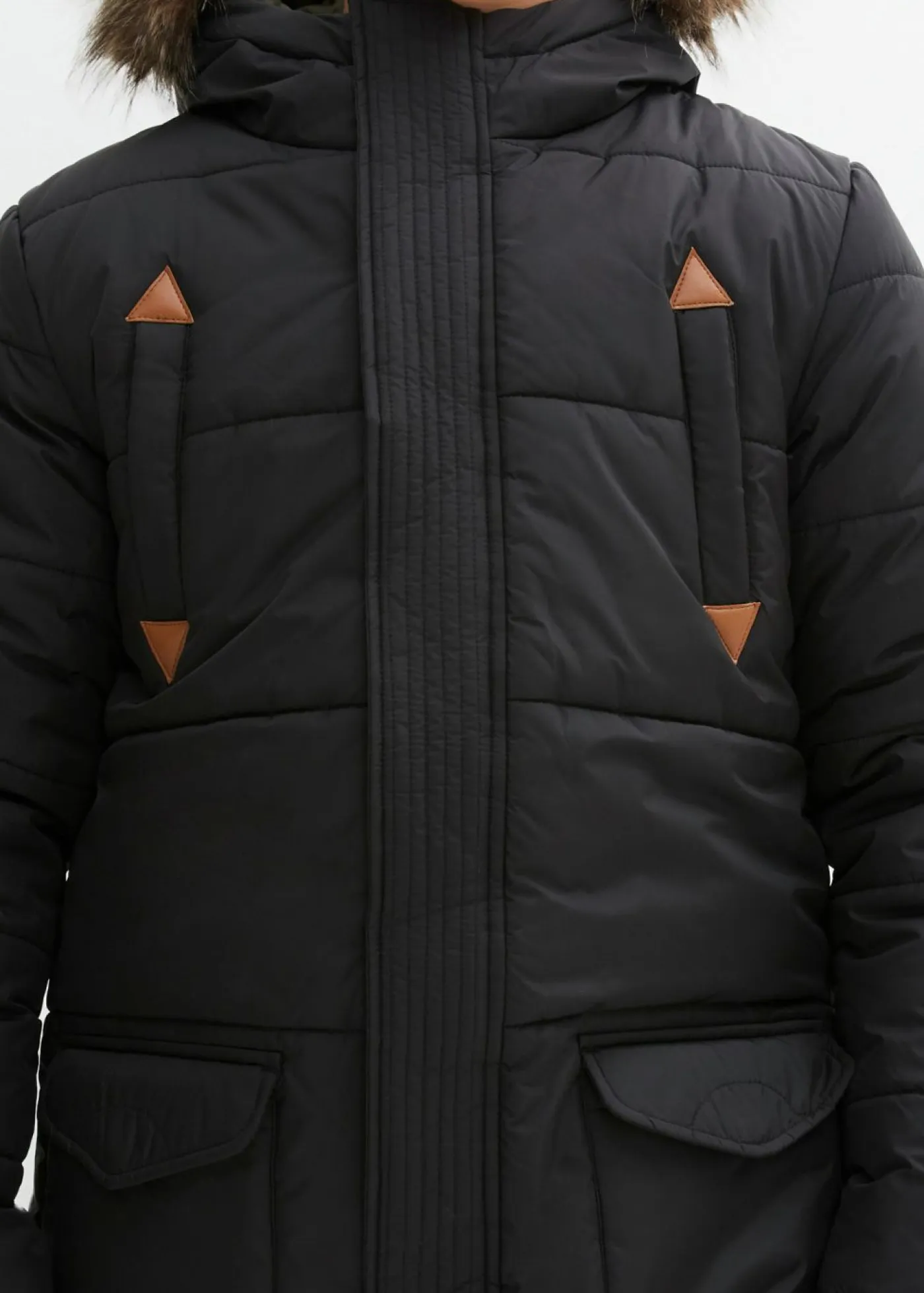 Parka de invierno con detalles de piel sintética y capucha de pelo
