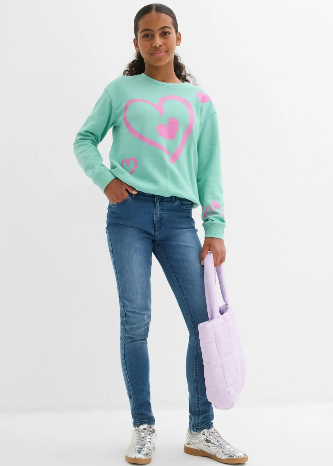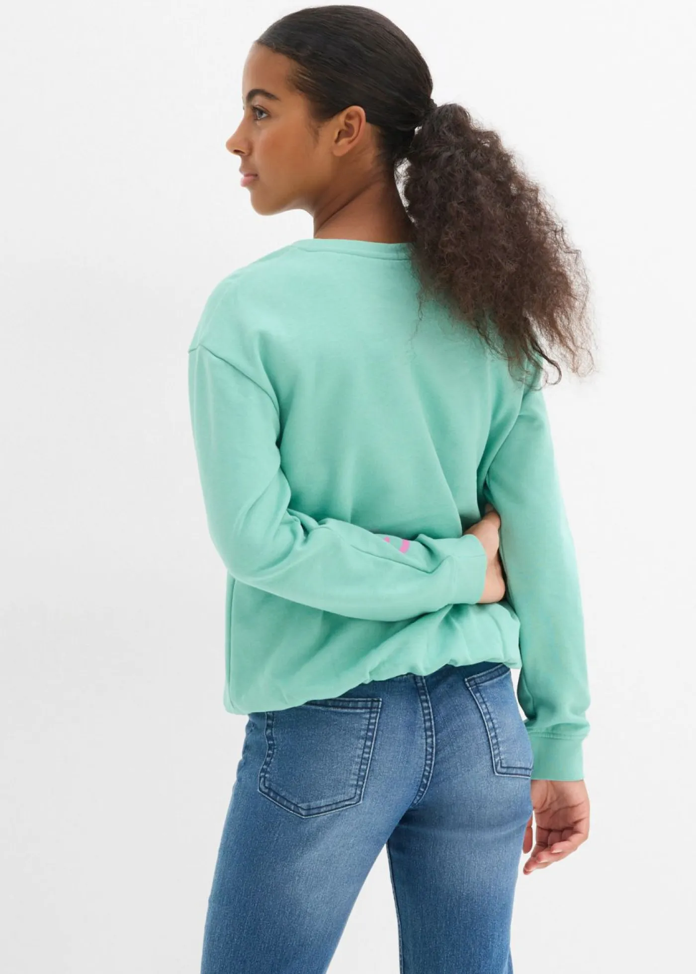 Sudadera de algodón orgánico puro con dobladillo abullonado para niñas.