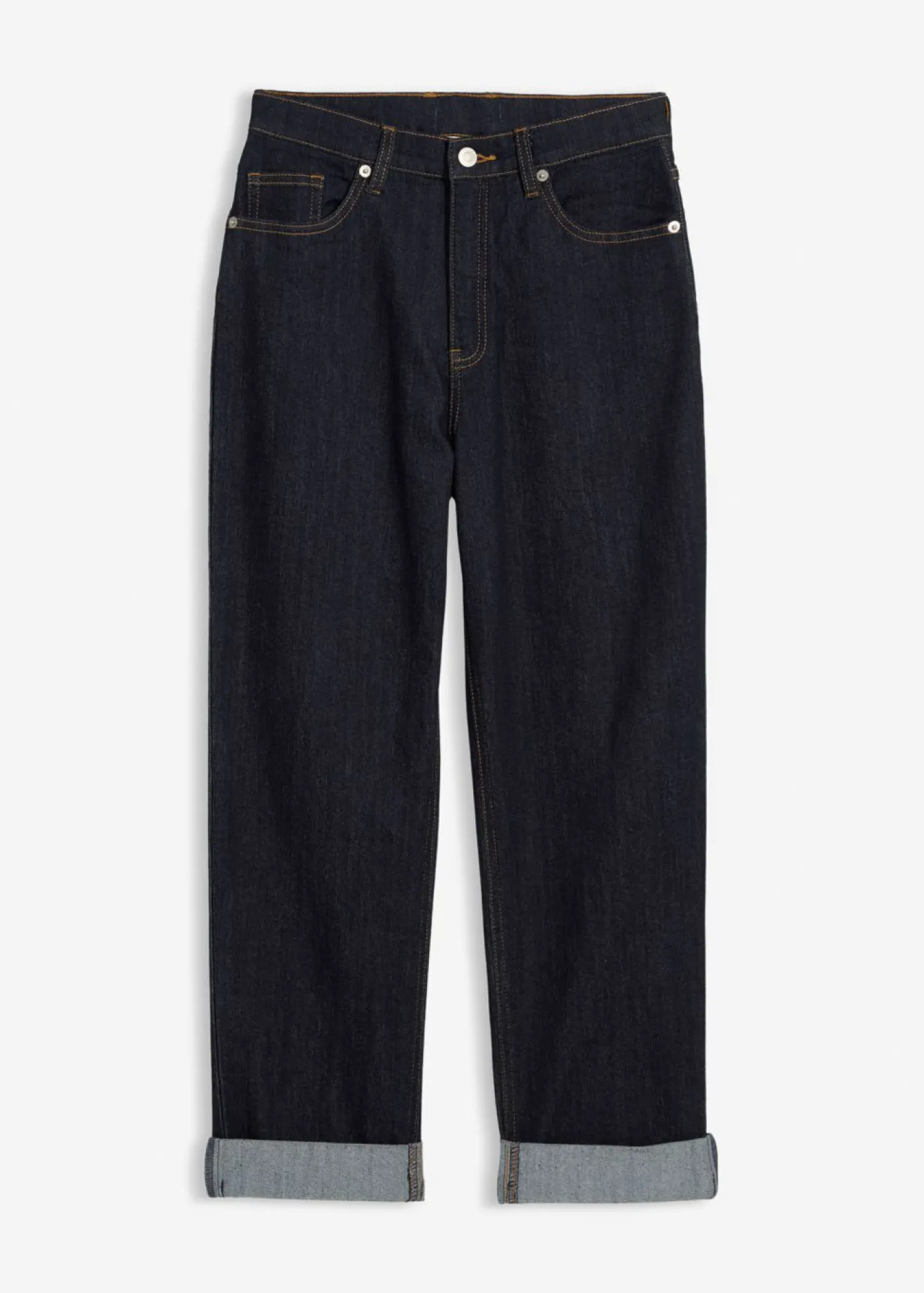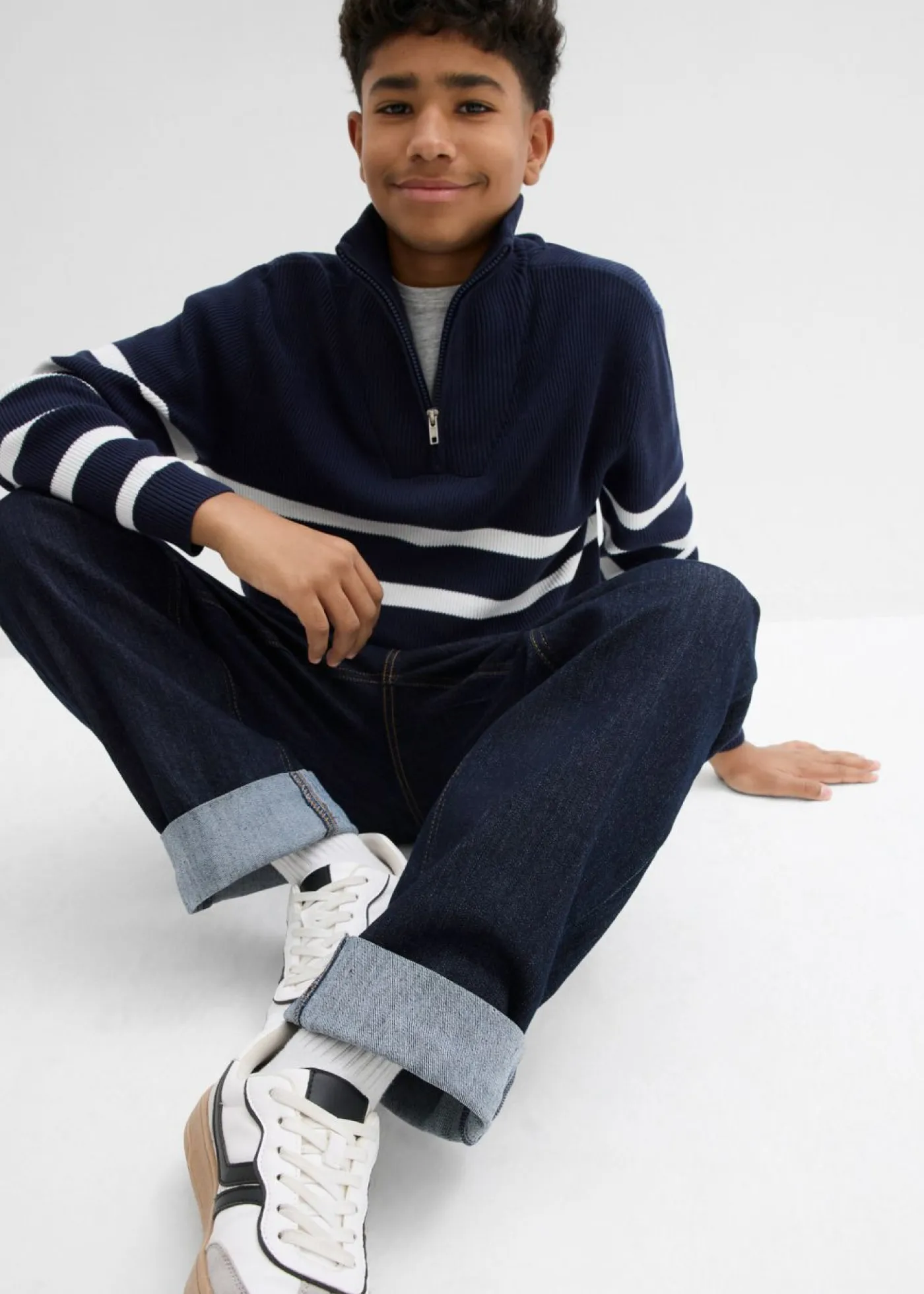 Vaqueros sencillos con corte baggy y dobladillo moderno para niños.