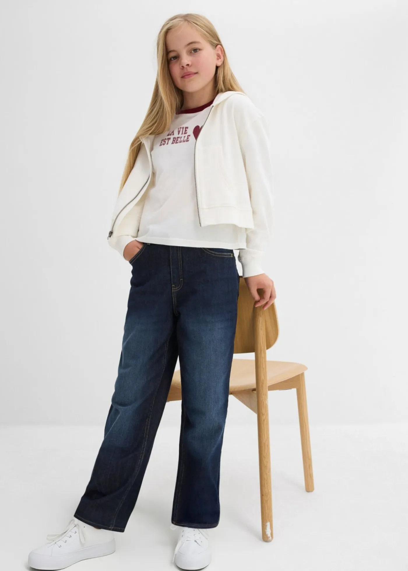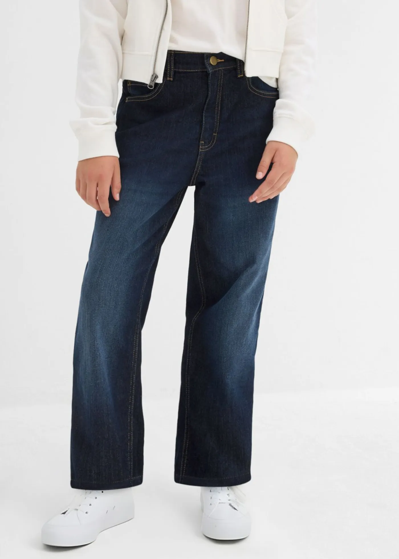 Vaqueros térmicos con perneras anchas, forro de punto y talle medio para niñas.
