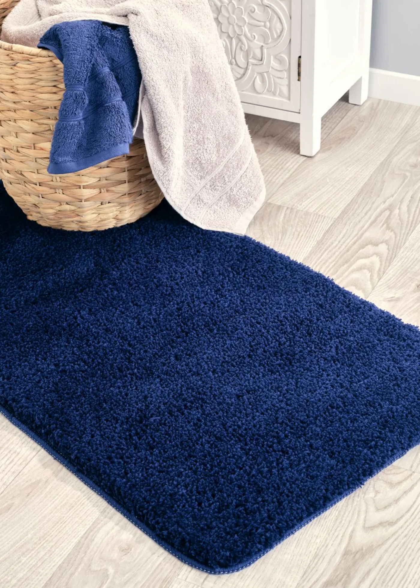 Alfombra de baño de poliéster reciclado. Acolchada. Reverso antideslizante. Súper suave. Apta para calefacción por suelo radiante.