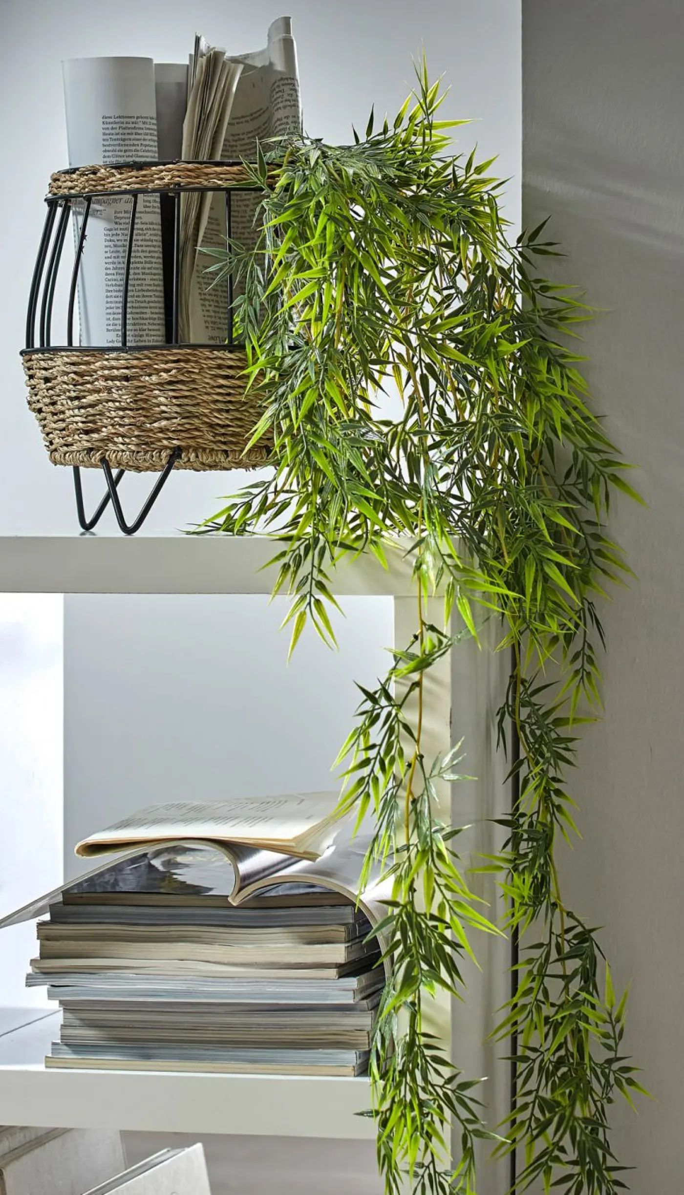 Atractivo de color verde: Planta artificial decorativa de bambú. De uso versátil, reproducido de forma realista Ideal para baños y habitaciones oscuras. Fácil de cuidar. Maceta no incluida.
