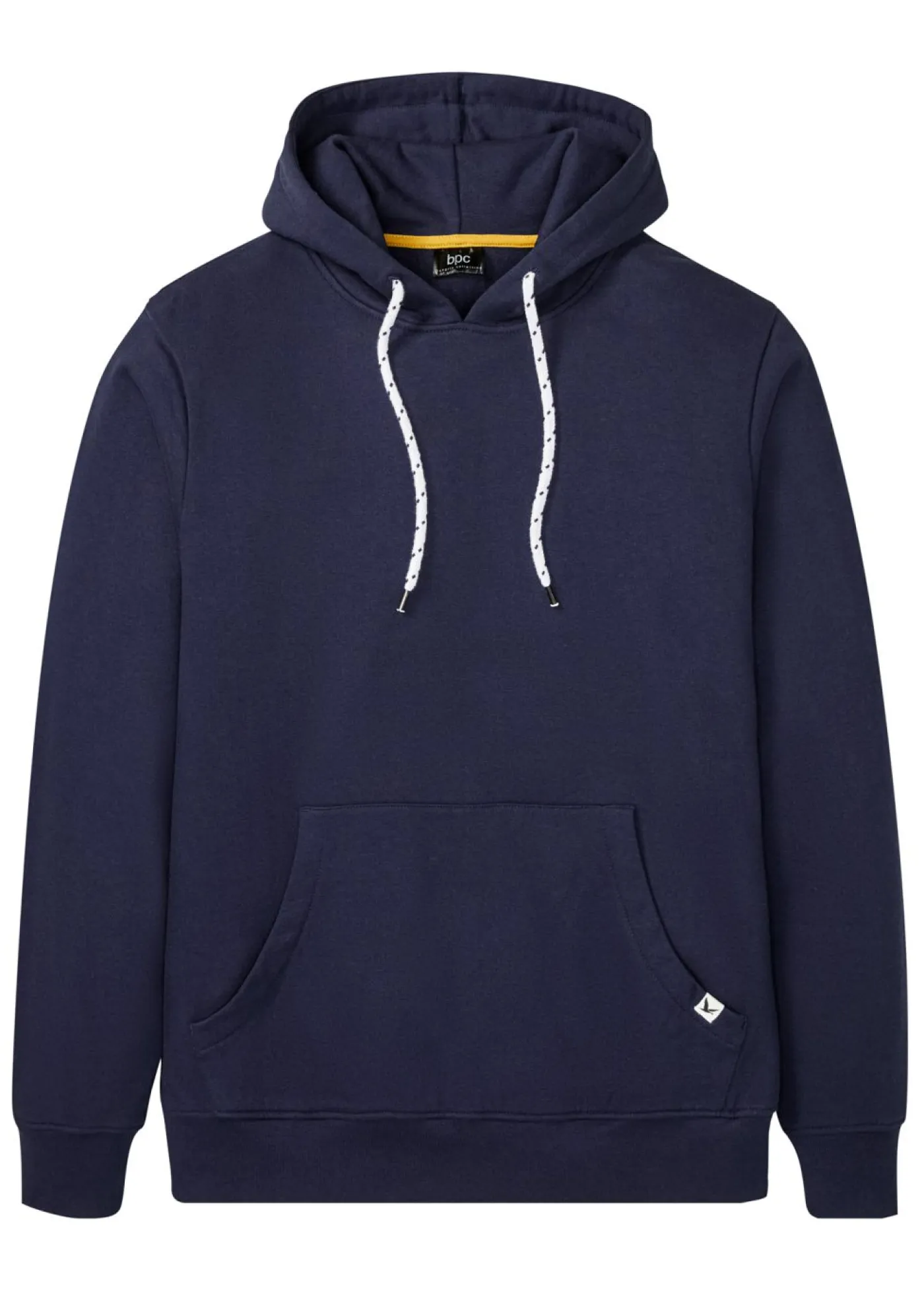 Bonita sudadera con capucha, corte cómodo, bolsillo tipo canguro en la parte delantera y una pequeña etiqueta.
