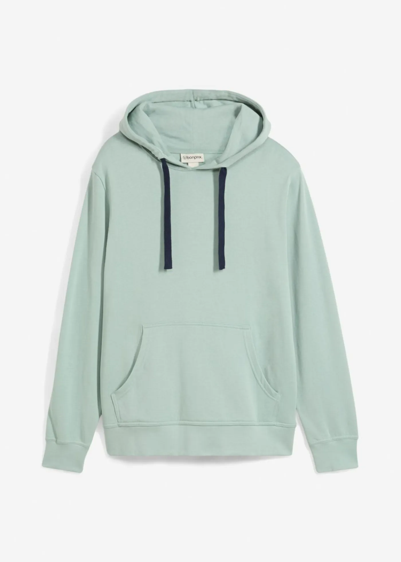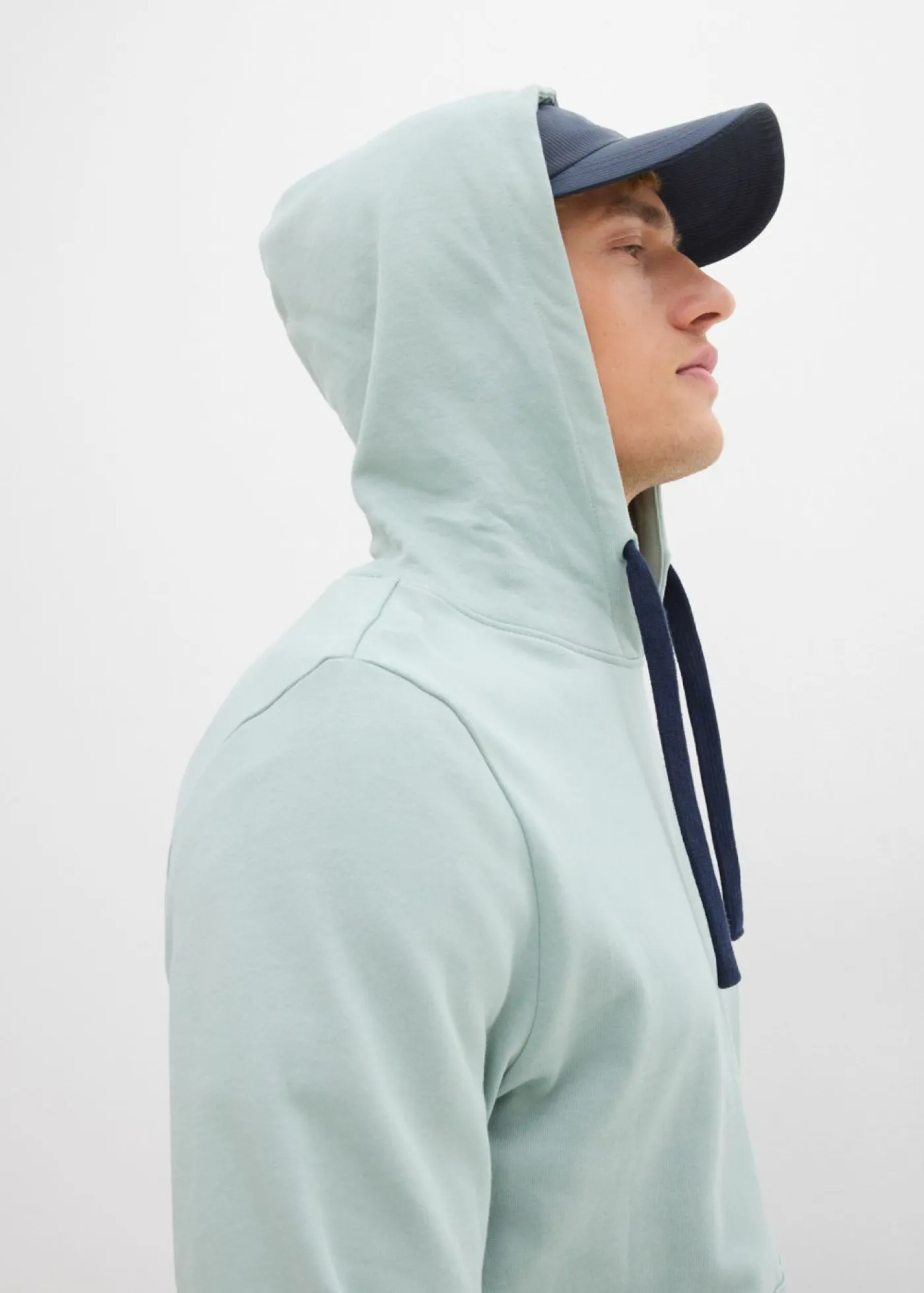 Moderna sudadera básica con capucha y cordones en contraste, interior suave Con puños de canalé y bolsillos de parche.
