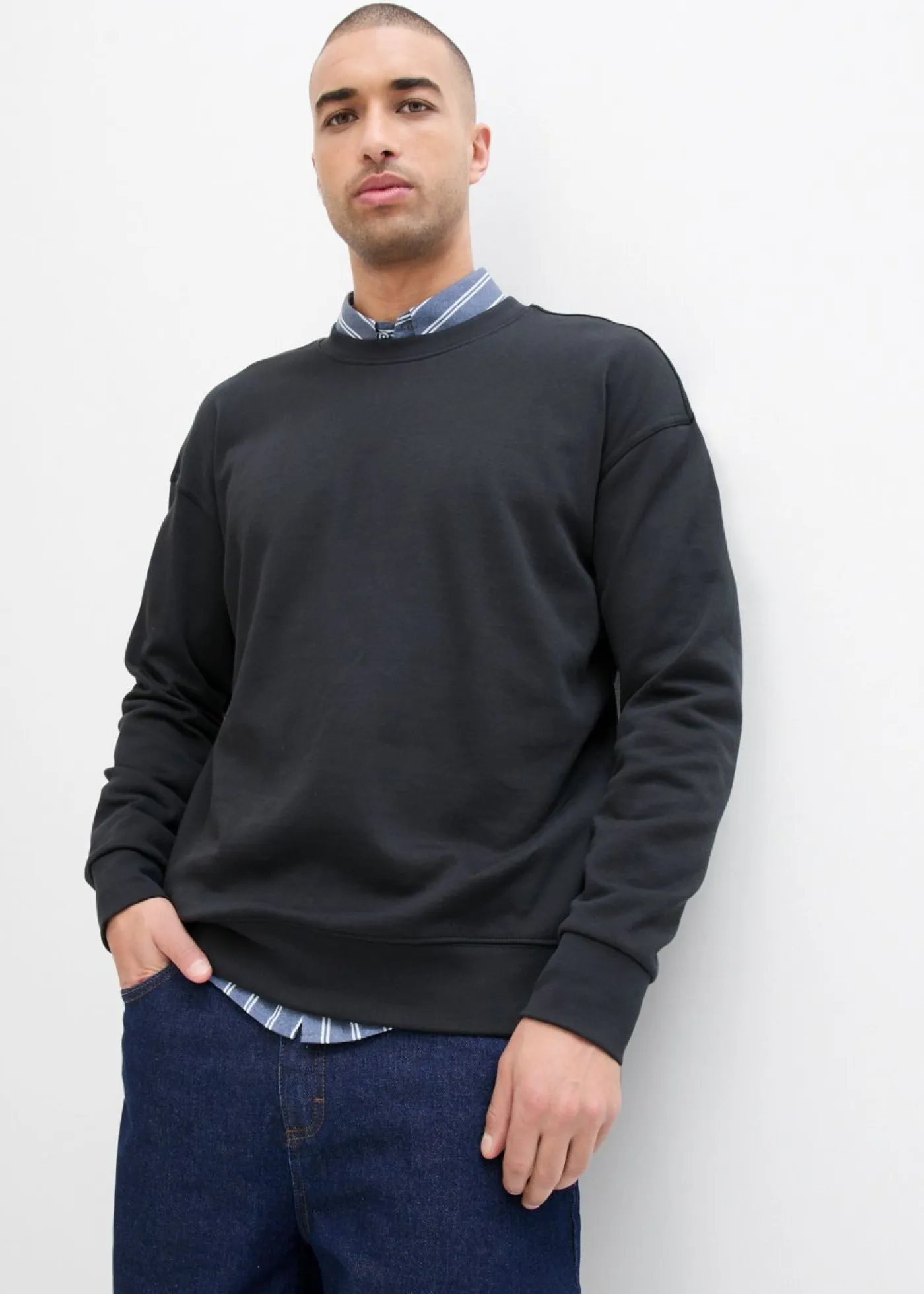 Sudadera básica moderna de algodón orgánico puro con hombros caídos e interior suave.
