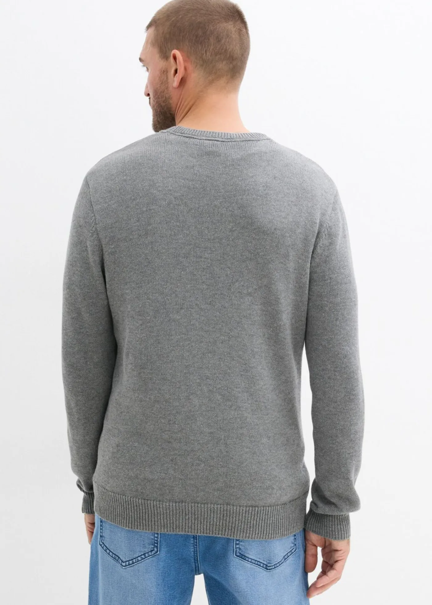 Jersey moderno con cuello redondo y detalles de piel sintética. Se puede lavar a máquina.