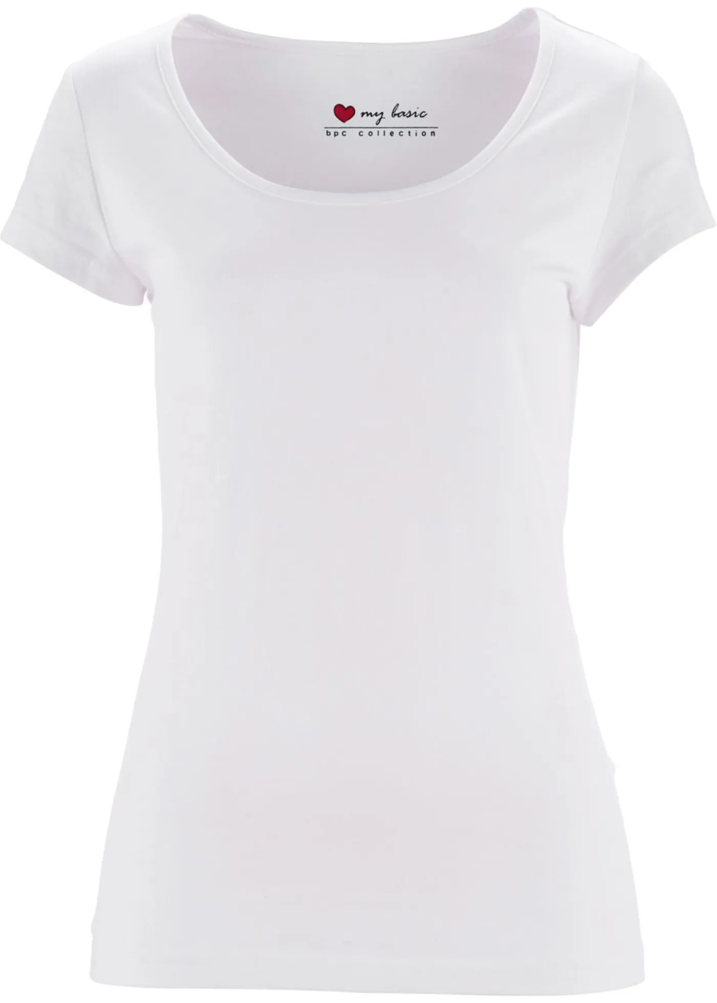 Camiseta de algodón con manga corta. Camiseta de b.p.c. Casual en bonito tejido elástico con cuello redondo. Largo de aprox. 62 cm (talla 32/34) a aprox. 70 cm (talla 48/50). Se puede lavar a máquina.