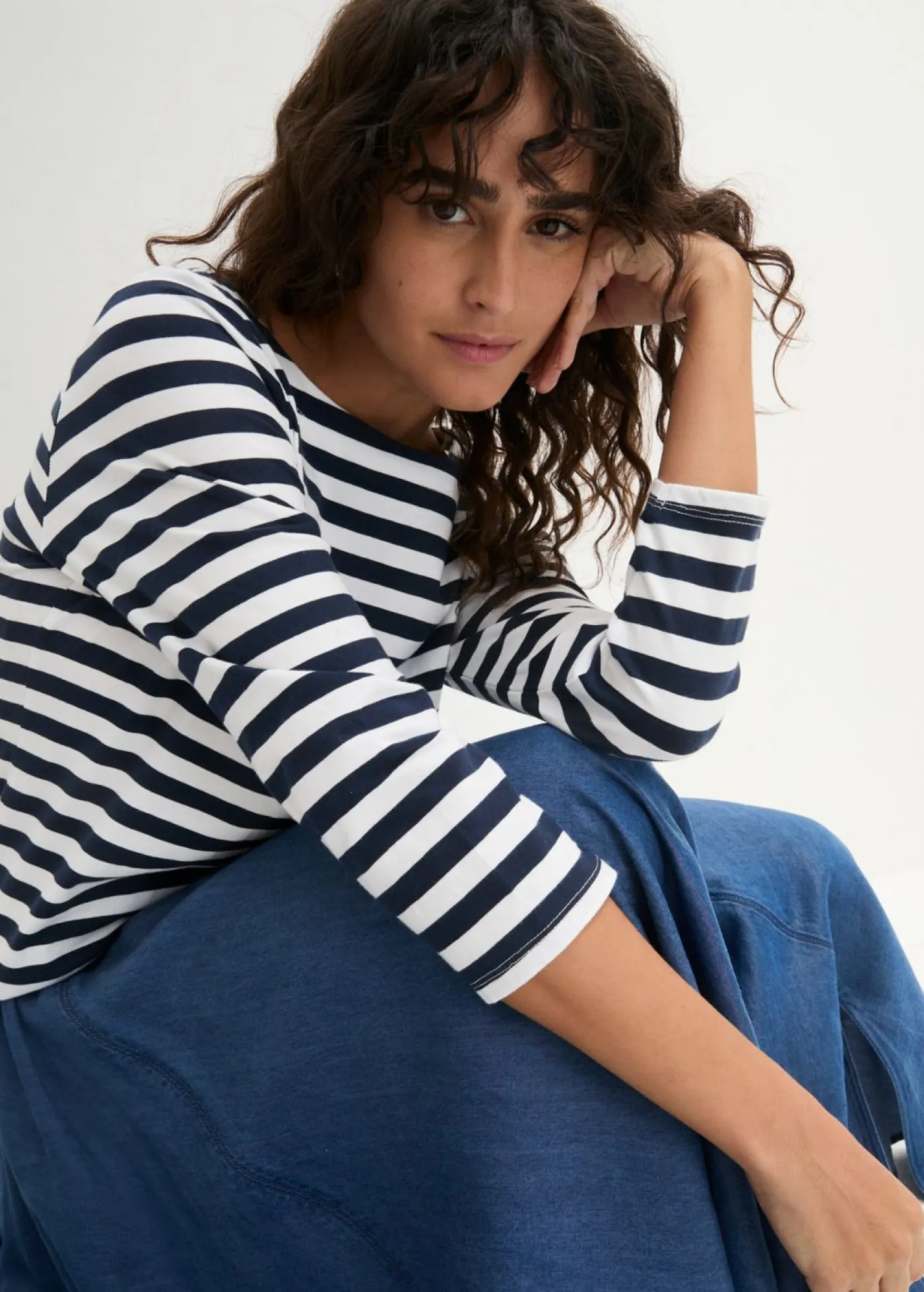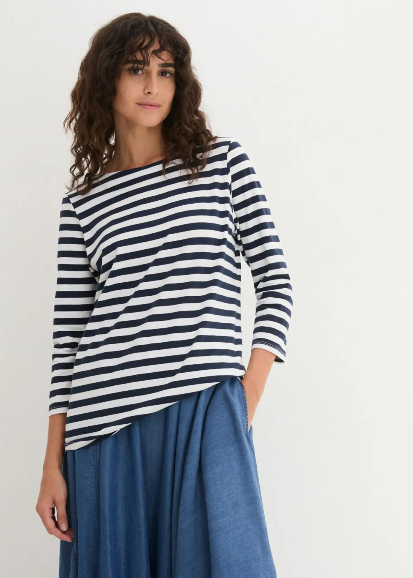 Camiseta básica de algodón elástico. Largo total de aprox. 66 cm en talla 40/42. Se puede lavar a máquina.