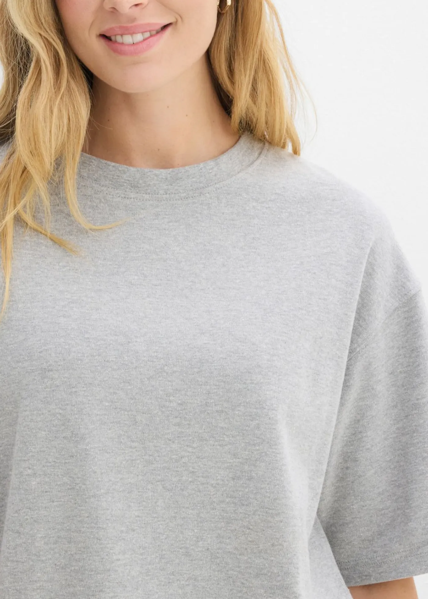 Moderna camiseta holgada de algodón orgánico pesado. Largo de aprox. 70 cm en talla 40/42. Se puede lavar a máquina.