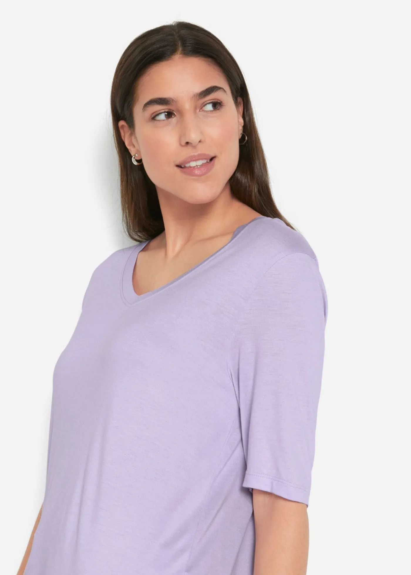 Camiseta versátil con escote en V de viscosa sostenible en un práctico conjunto de 2 unidades.