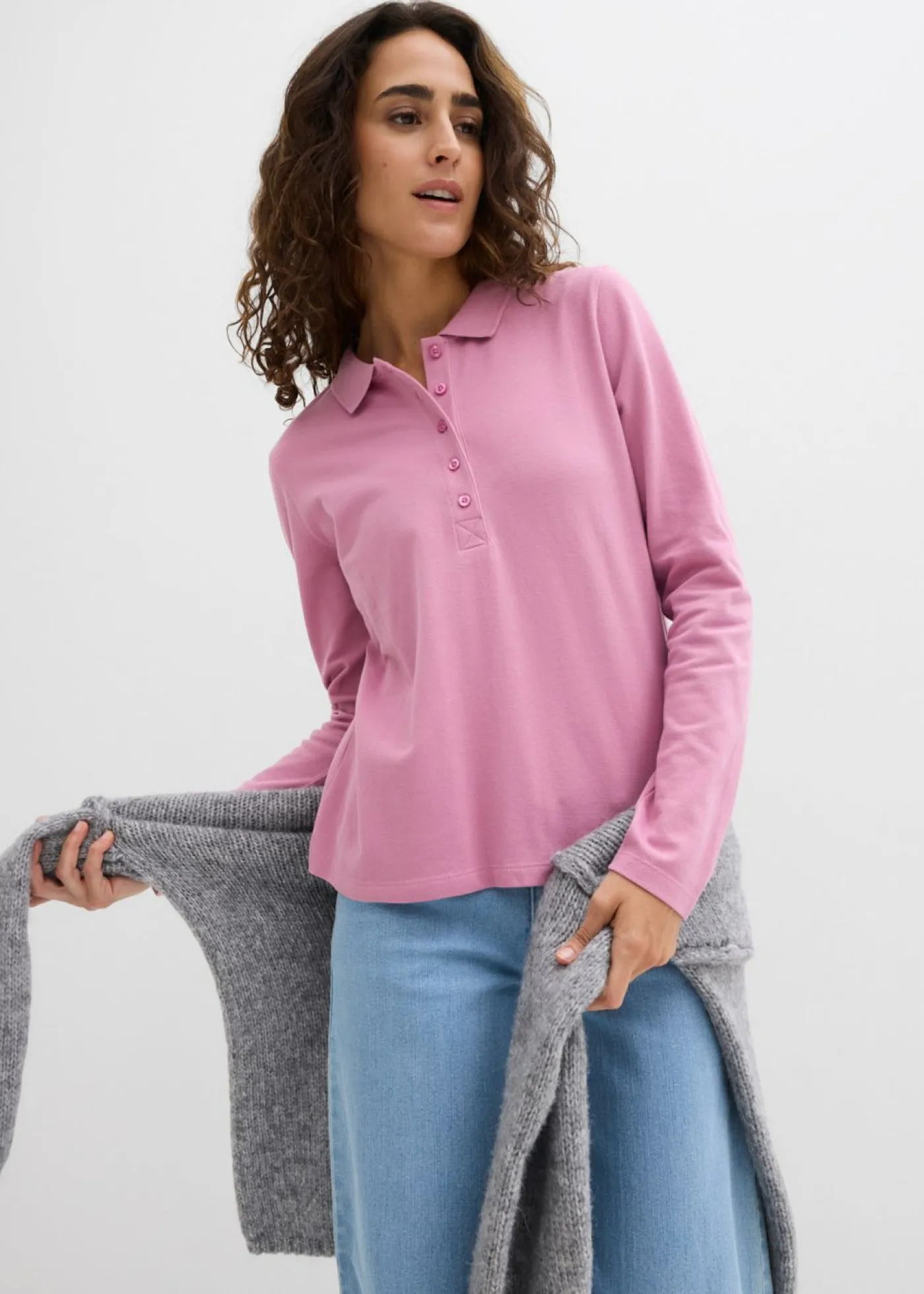 Bonito polo de piqué de manga larga. Polo clásico de piqué de algodón ecológico con botones. Largo de aprox. 62 cm en talla 40/42. Se puede lavar a máquina.