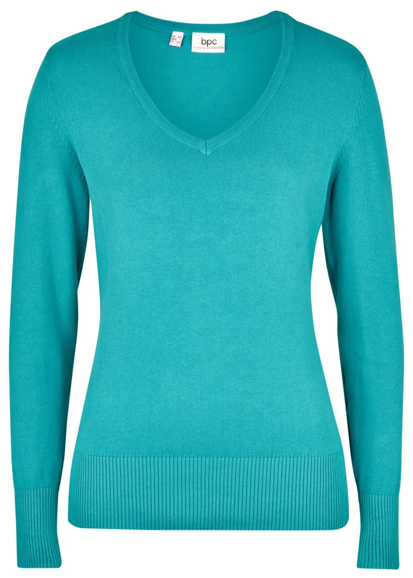 Cómodo jersey básico con algodón. Jersey de b.p.c Casual de punto fino con escote en V y puños de canalé. Largo de aprox. 64 cm (talla 36/38) a aprox. 72 cm (talla 52/54). Se puede lavar a máquina.