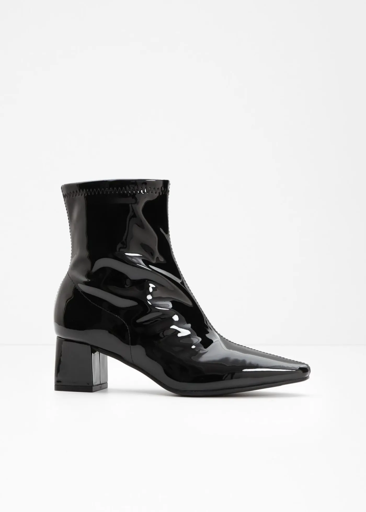 Elegantes botines de charol con caña flexible.