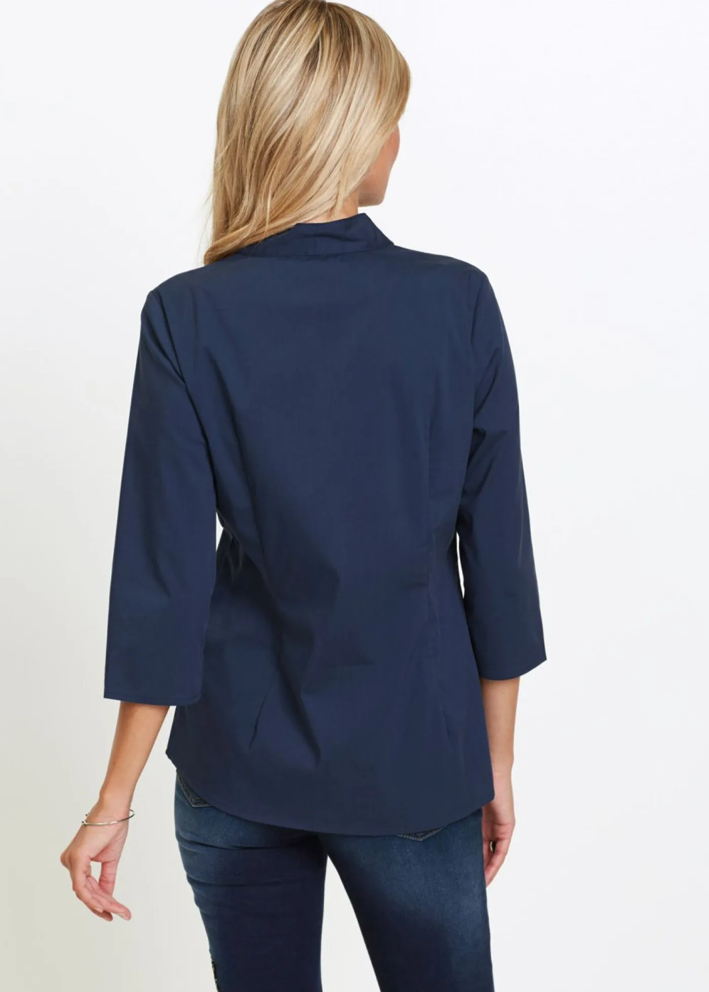 Blusa ajustada con cuello alto y mangas 3/4. Largo de aprox. 65 cm (talla 36) a aprox. 74 cm (talla 54). Se puede lavar a máquina.