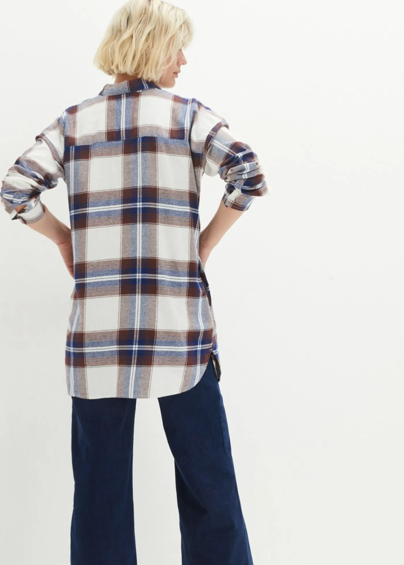Blusa holgada de franela de algodón puro con botones en la parte delantera. Largo de aprox. 80 cm en talla 42. Se puede lavar a máquina.