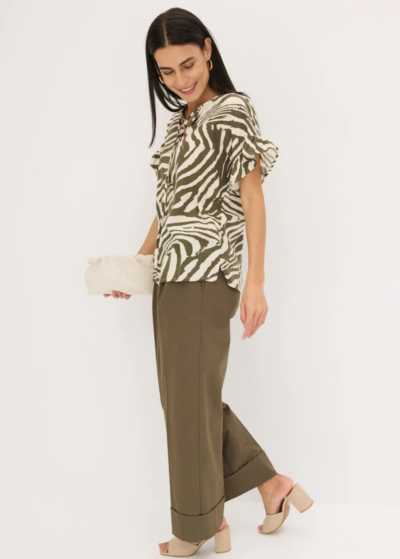 | Color | Crudo/verde oliva oscuro con estampado de cebra |
