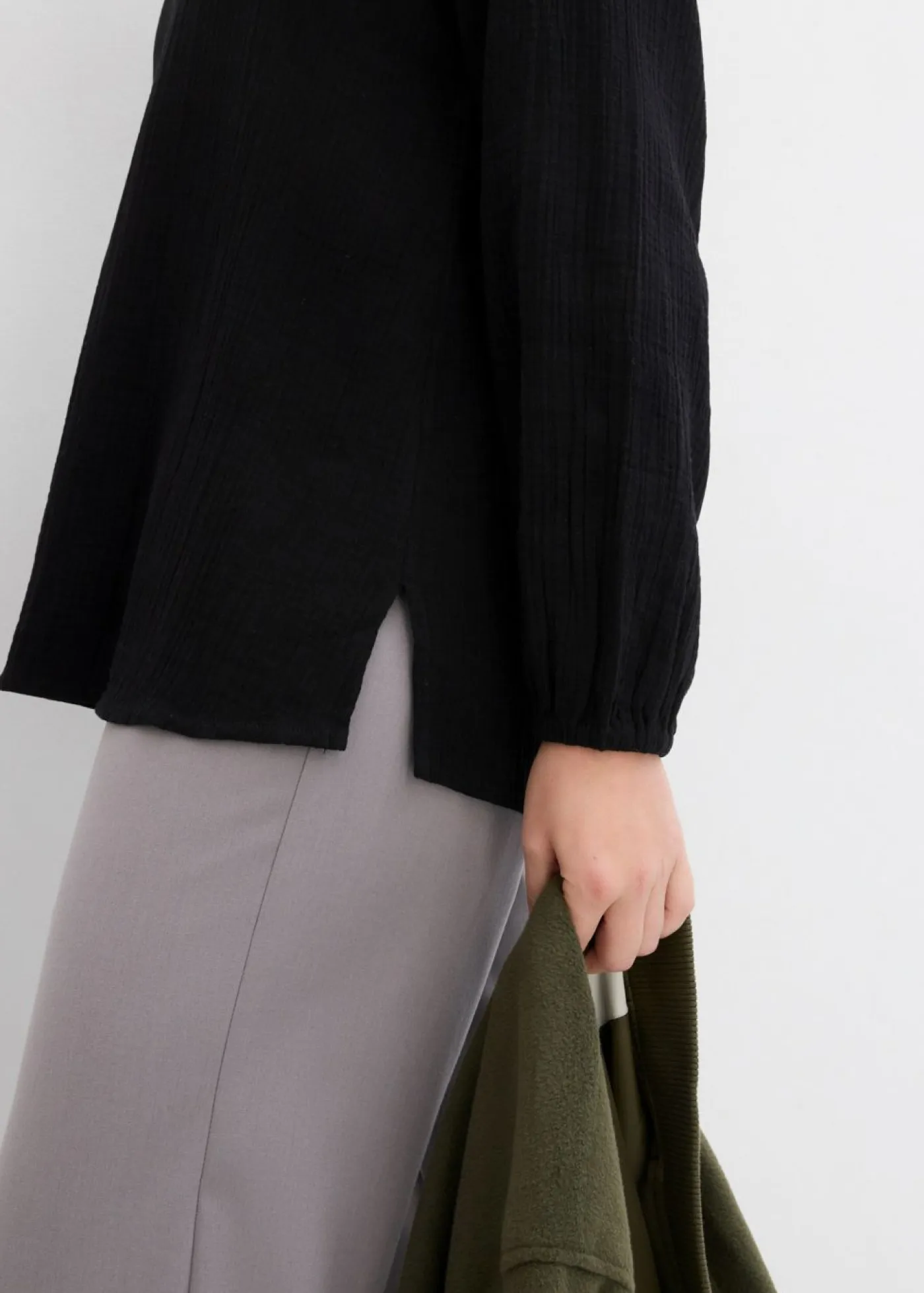 Túnica larga de muselina con escote en V. Largo de aprox. 74 cm en talla 42. Se puede lavar a máquina.