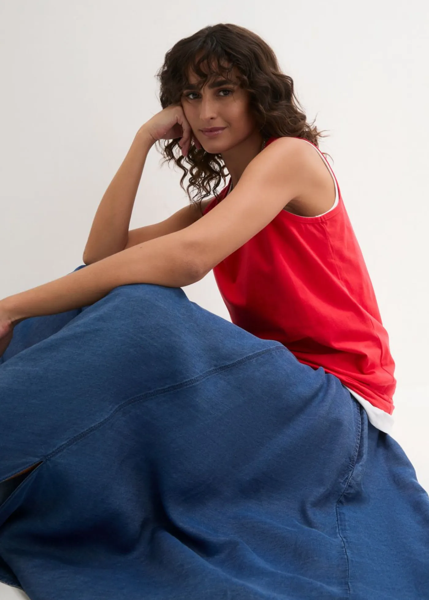 Cómodo top largo de punto sencillo. Gris claro jaspeado: 90 % algodón, 10 % viscosa, colores no jaspeados: 100 % algodón.