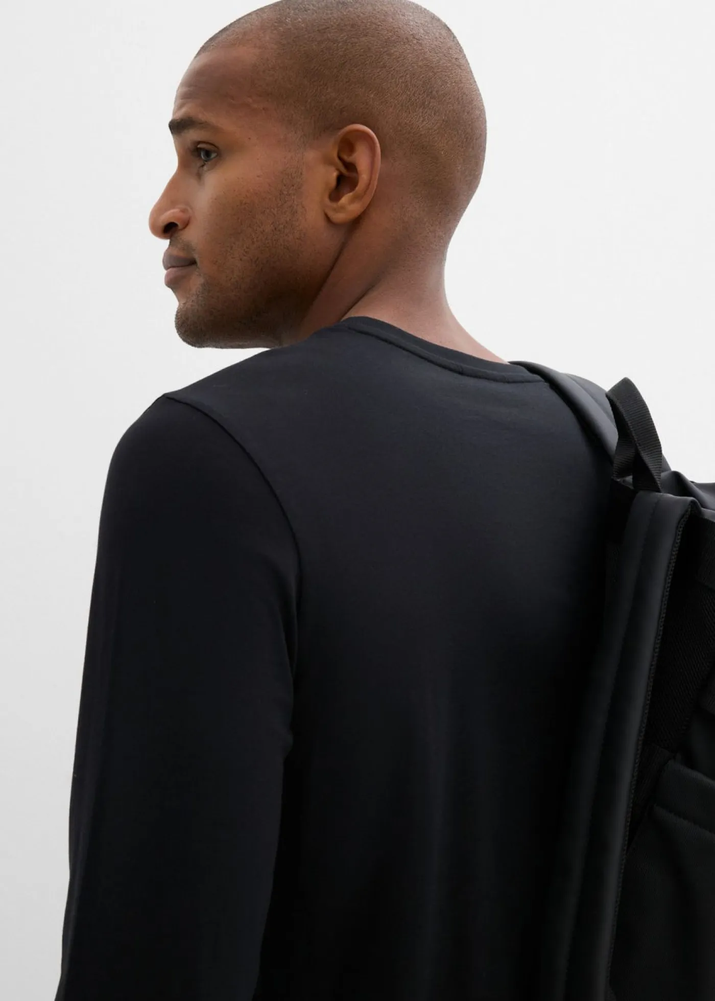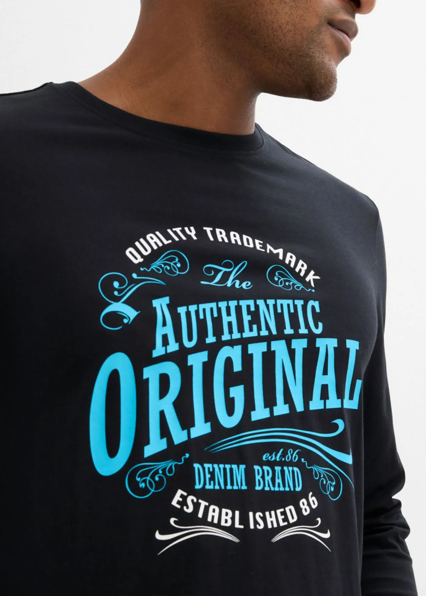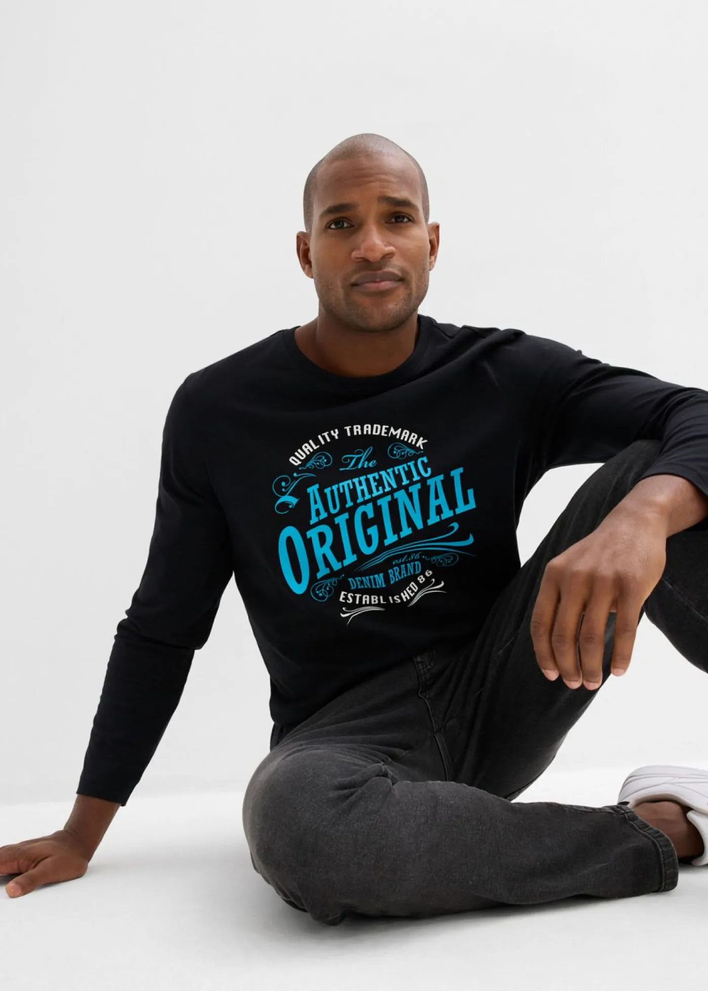 Camiseta moderna con manga larga, cuello redondo y un gran estampado.