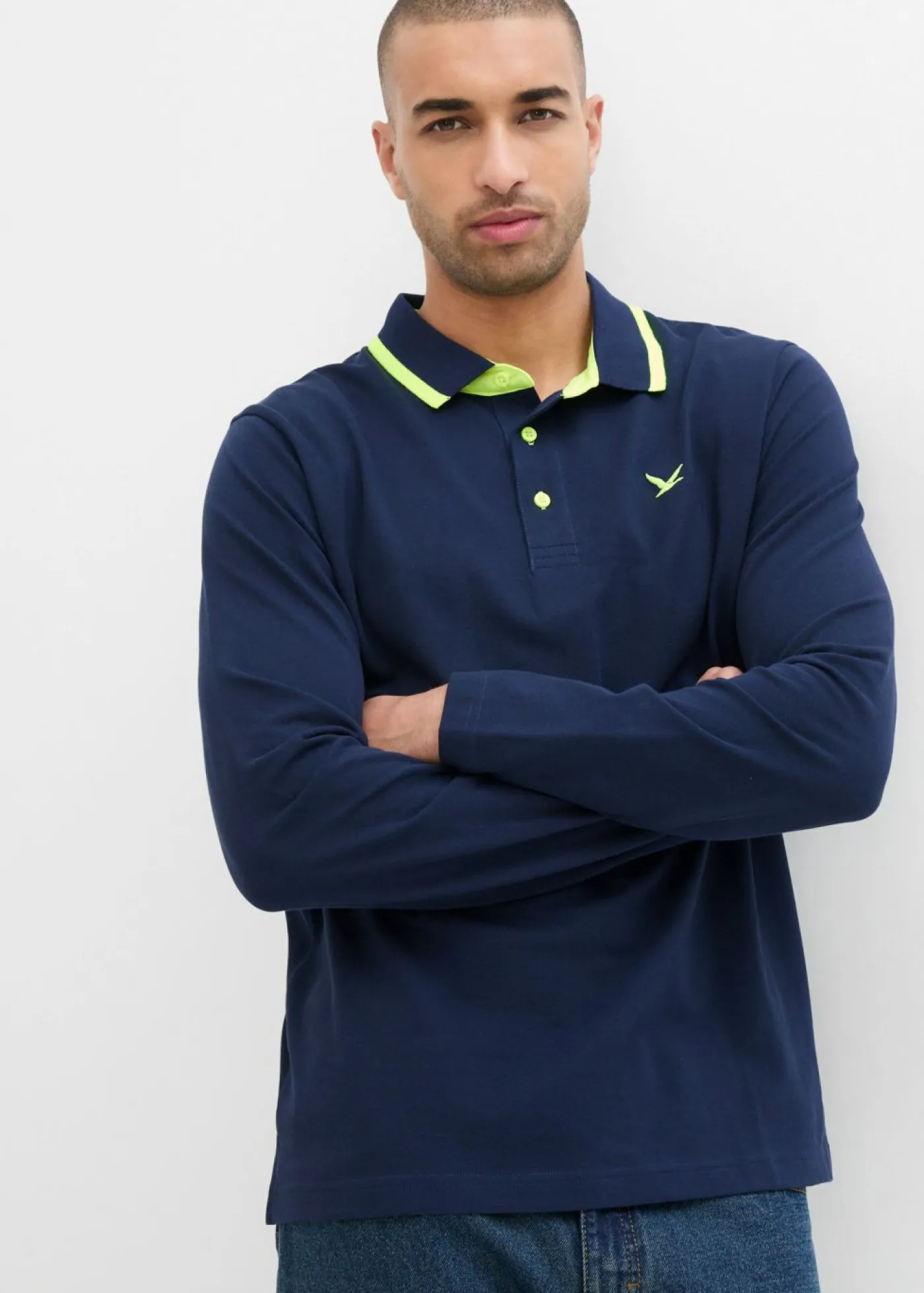 Moderno polo de manga larga en calidad piqué.