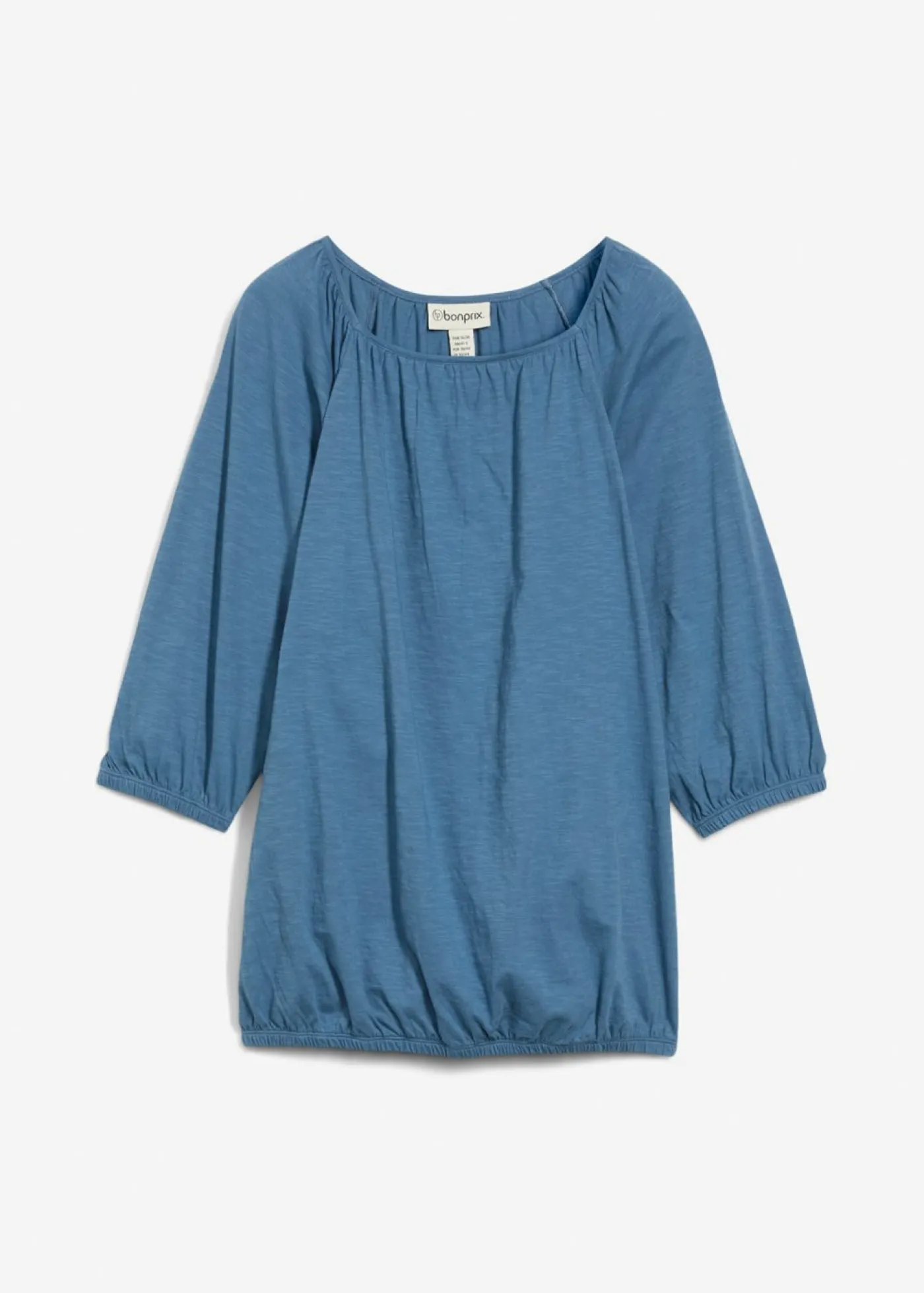 Camiseta moderna con escote cuadrado y favorecedoras mangas abullonadas. Largo de aprox. 70 cm en talla 40/42. Se puede lavar a máquina.