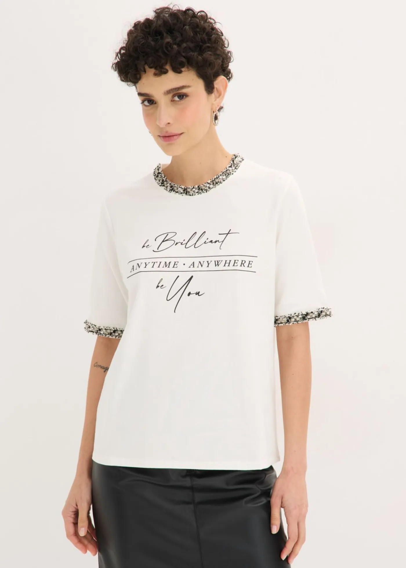 Cómoda camiseta con cinta decorativa.