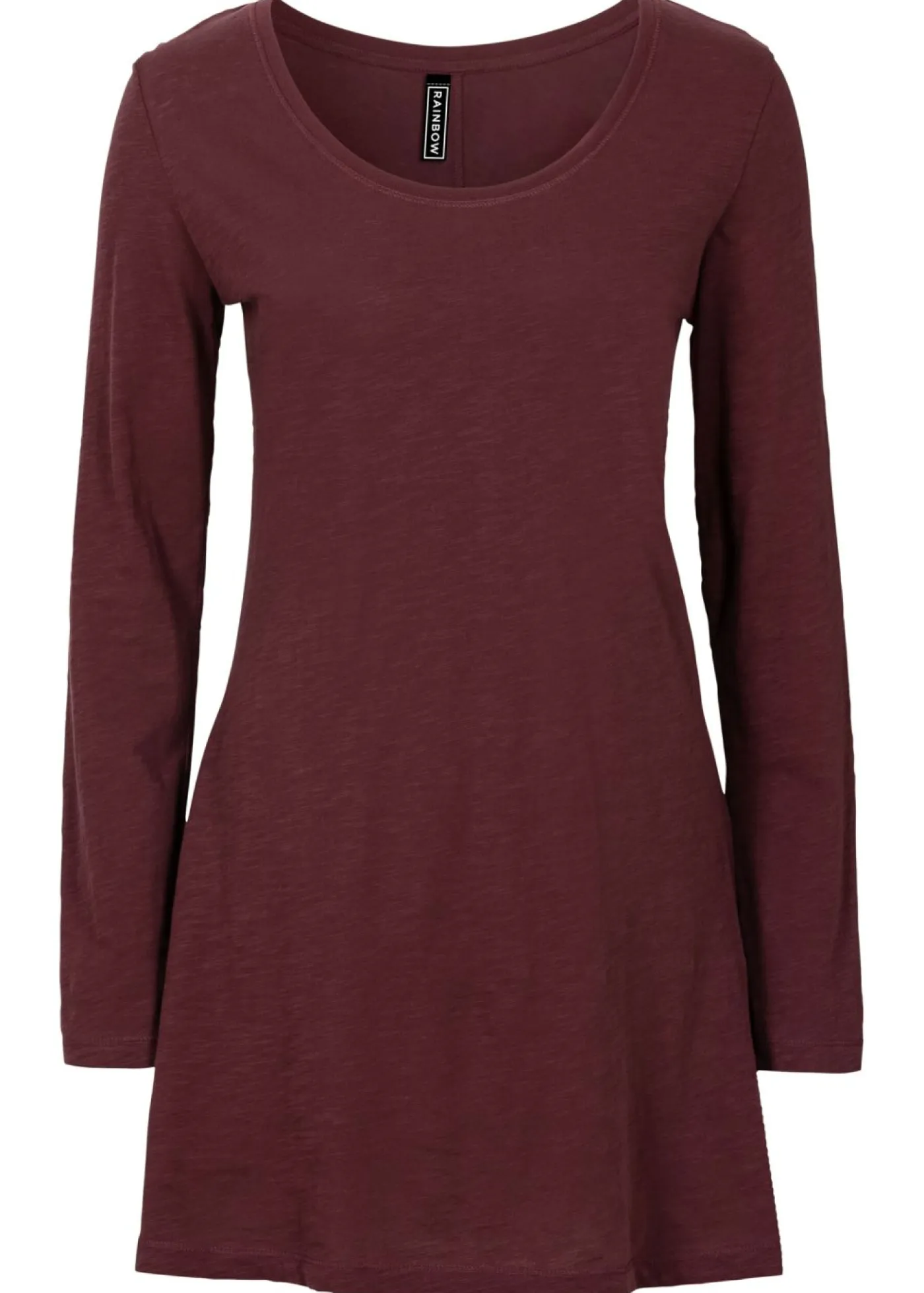Moderna camiseta larga con bajo redondeado. Largo de aprox. 84 cm en talla 40/42.