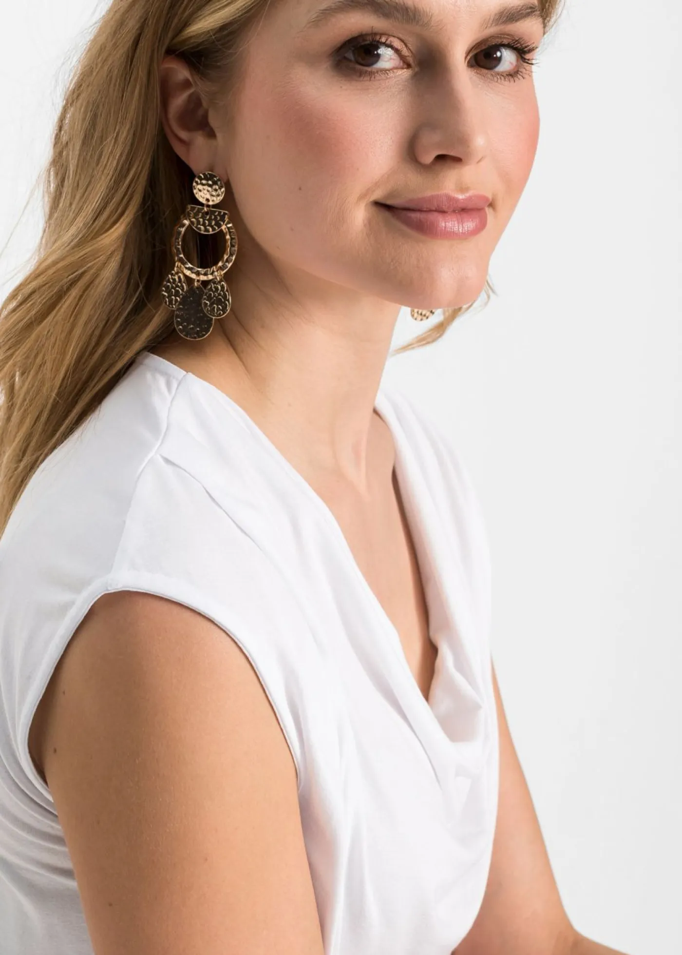 Encantadora camiseta con un bonito escote en cascada. Elegante camiseta con escote en cascada. Largo de aprox. 60 cm en talla 36/38.