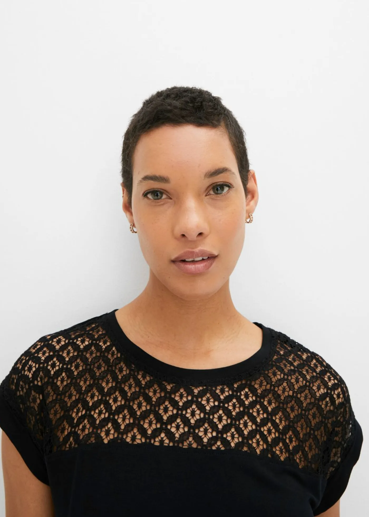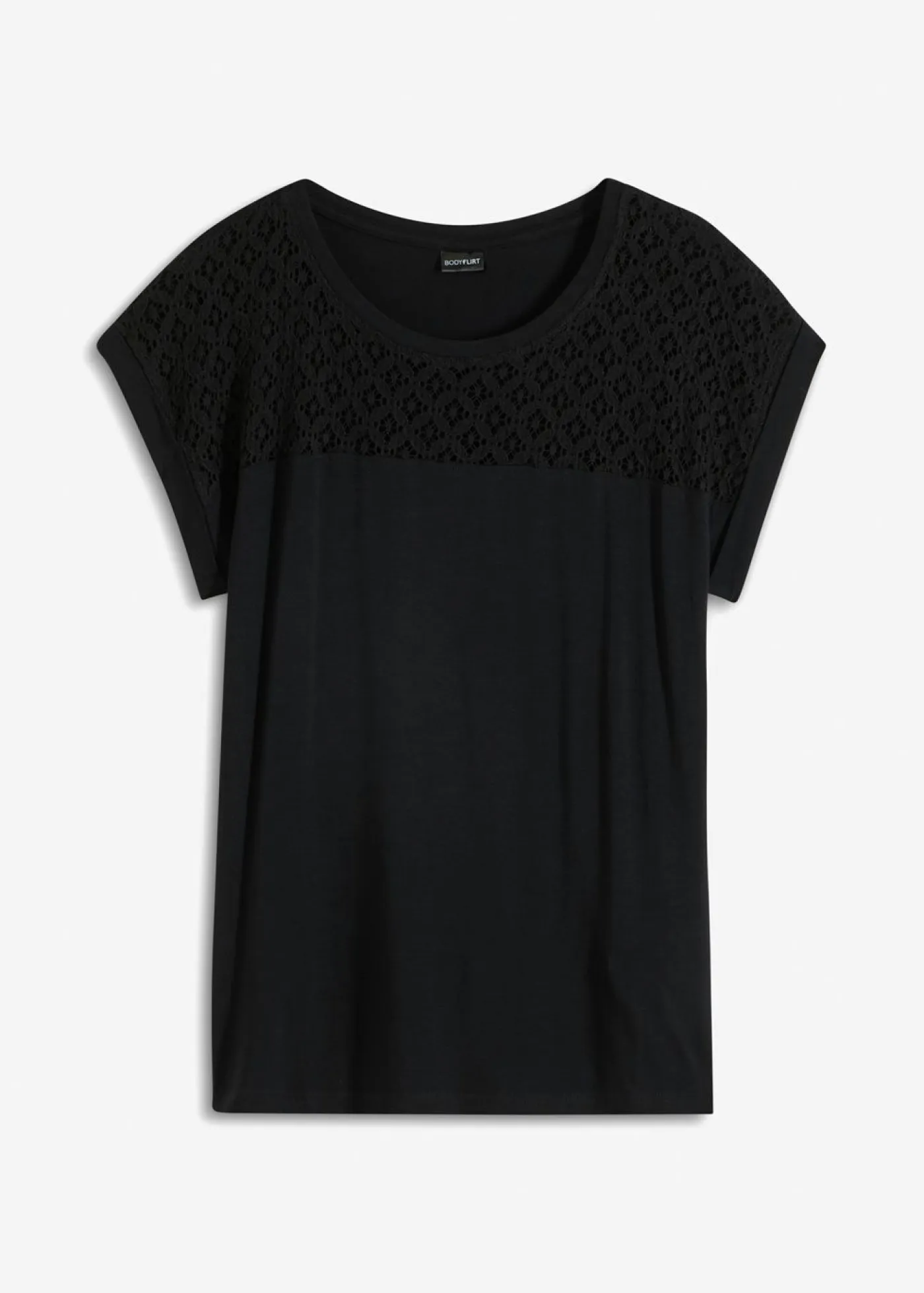 Camiseta de mezcla de viscosa suave con encaje de calidad. Camiseta extravagante de BODYFLIRT. La camiseta presenta encaje en la parte superior. Largo de aprox. 64 cm en talla 36/38.