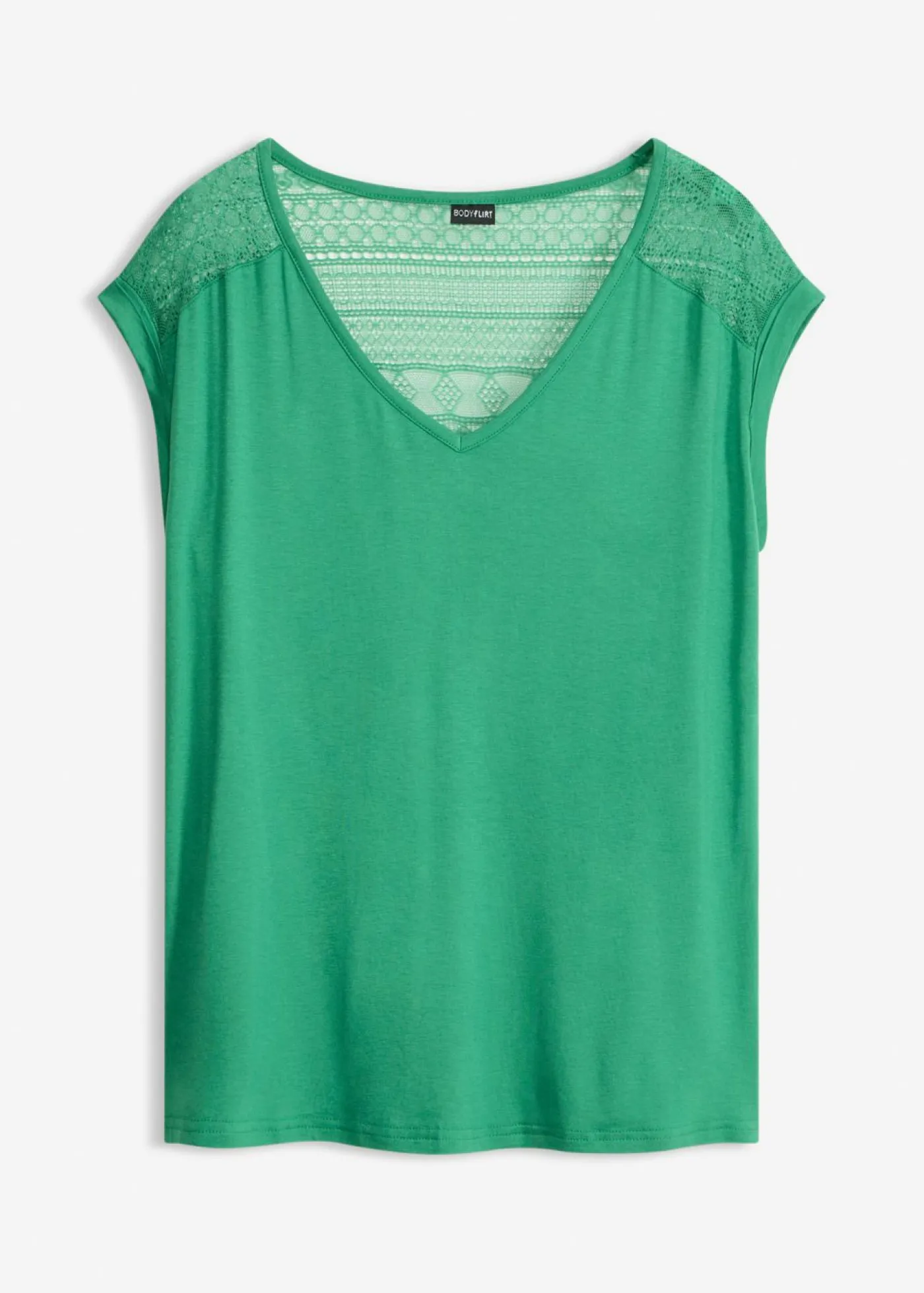 Moderna camiseta con encaje de calidad. Moderna camiseta de BODYFLIRT. La camiseta se ha confeccionado con encaje de calidad. Largo de aprox. 64 cm en talla 36/38.