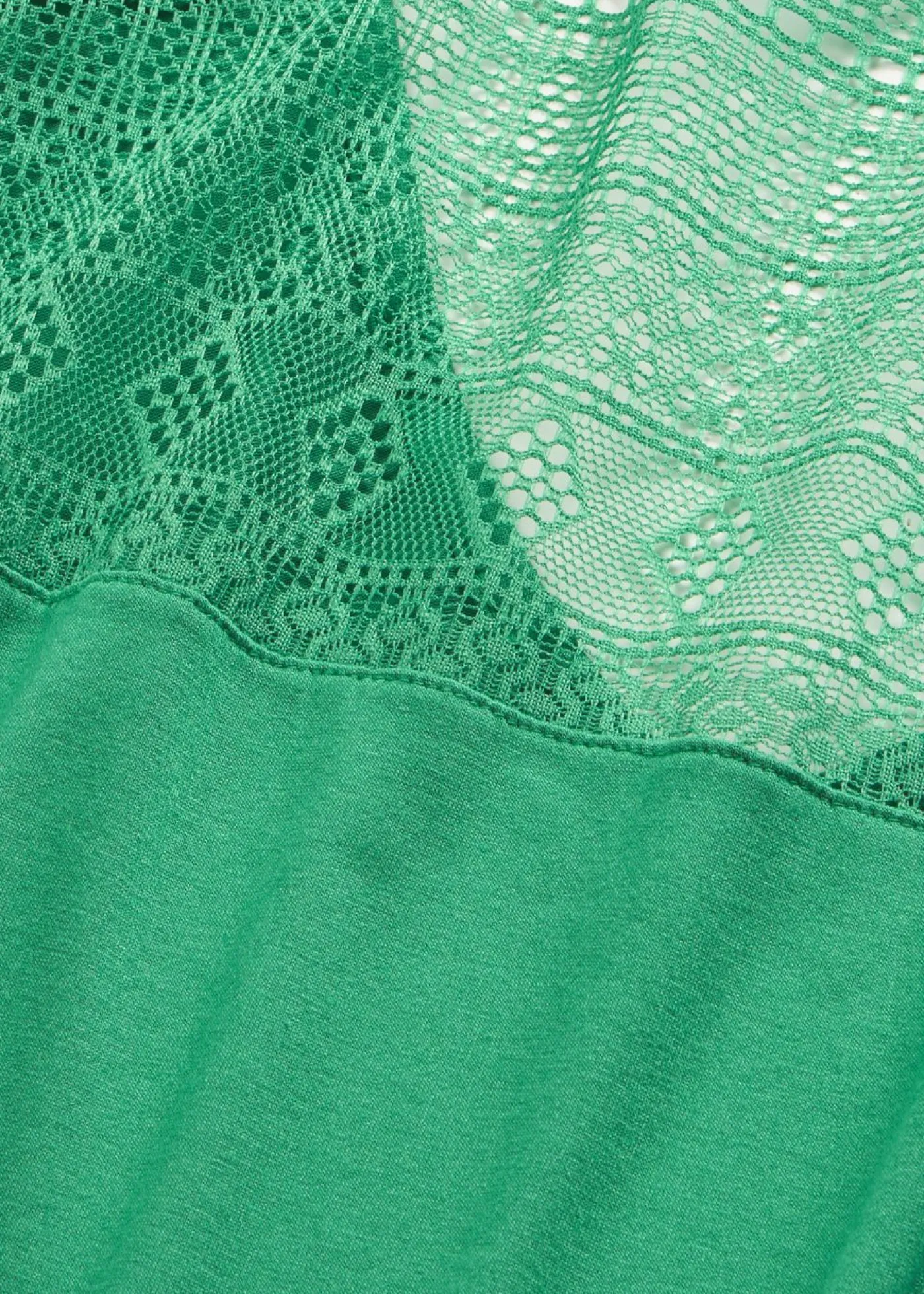 | Material | Material externo: 95% Viscosa (sostenible), 5% elastano; Encaje: 95% poliamida, 5% elastano |