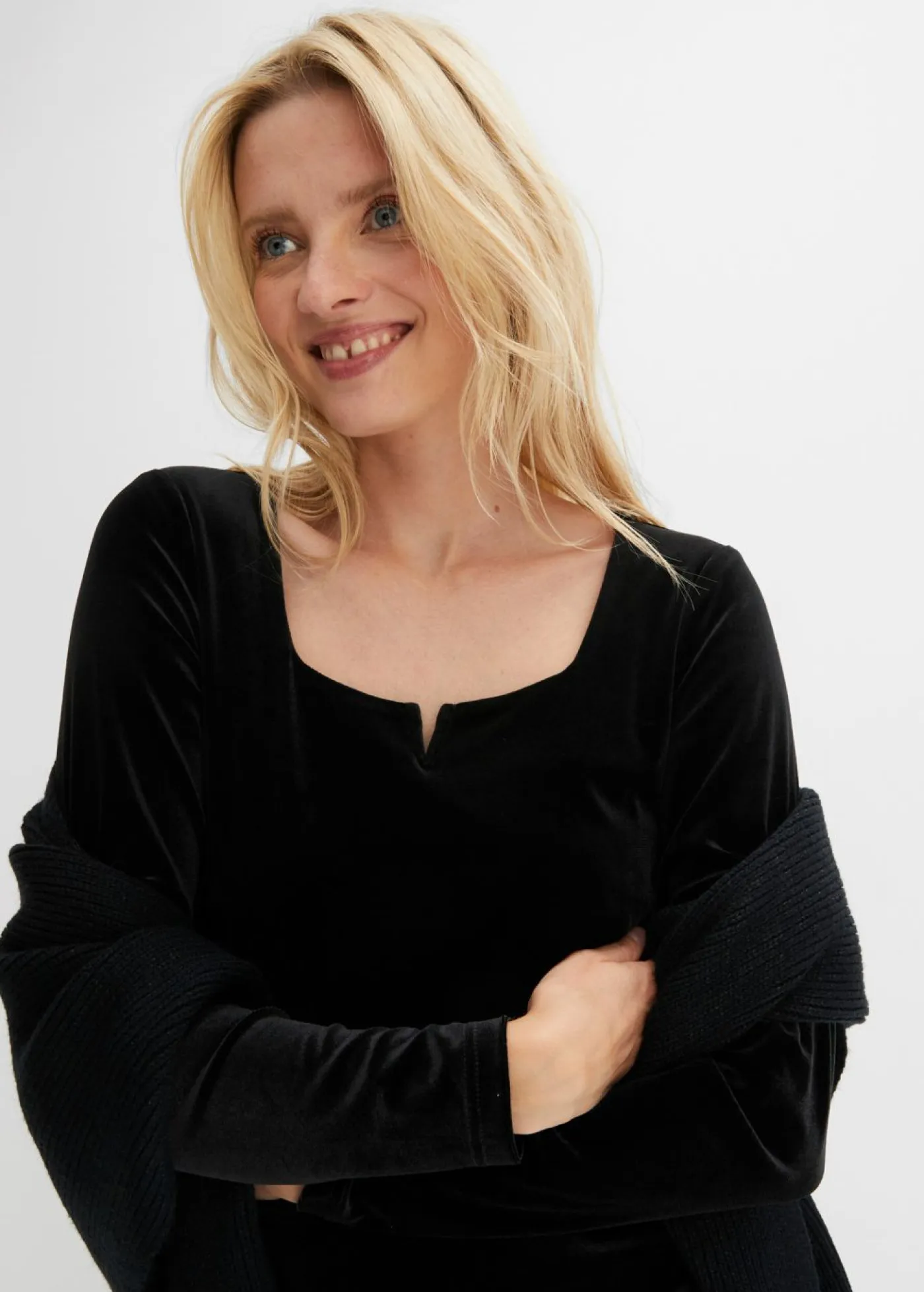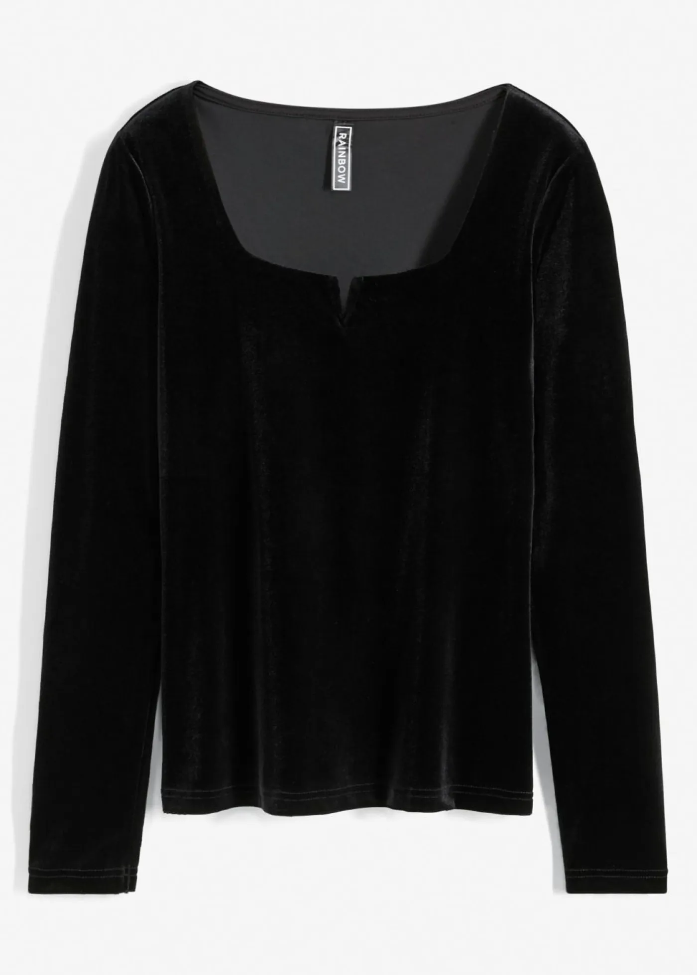 Camiseta femenina de terciopelo con escote cuadrado pronunciado y abertura.