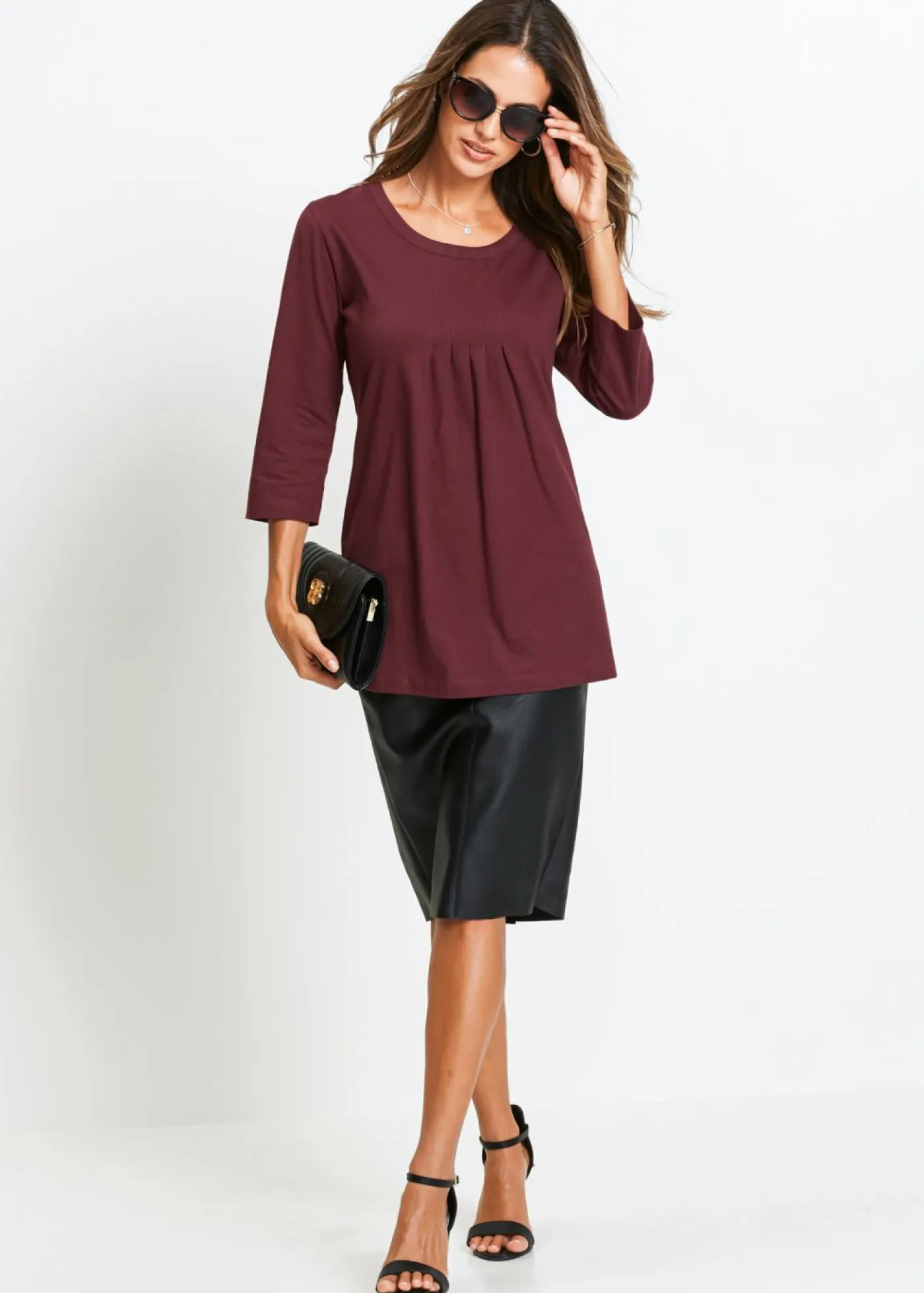 Cómoda camiseta larga de algodón con mangas 3/4. Largo de aprox. 76 cm en talla 40/42. Se puede lavar a máquina.