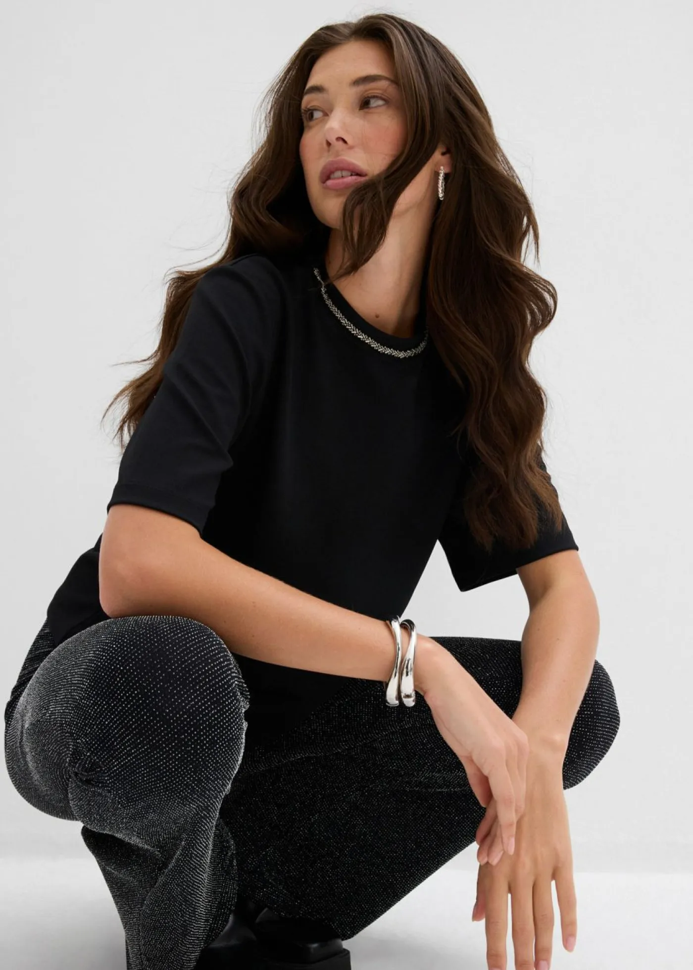 Camiseta oversize informal con aplicaciones en el escote.