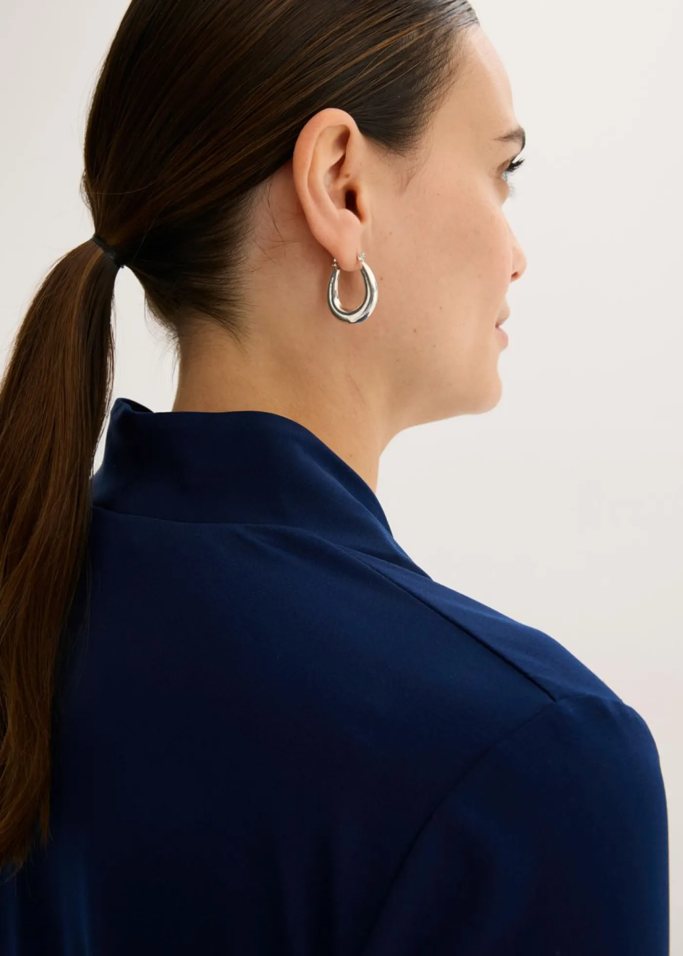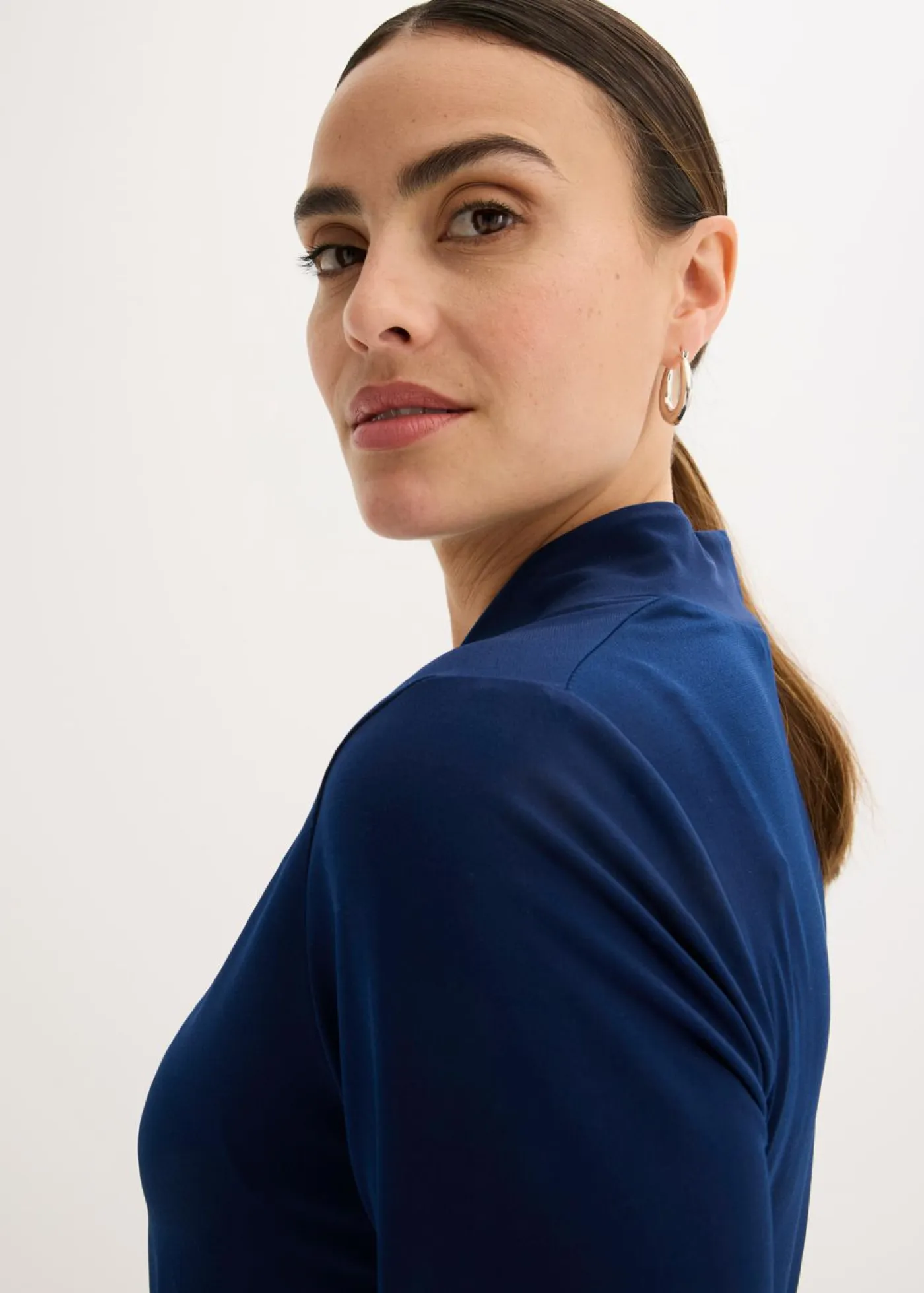 Elegante camiseta con cuello chimenea y escote en V.