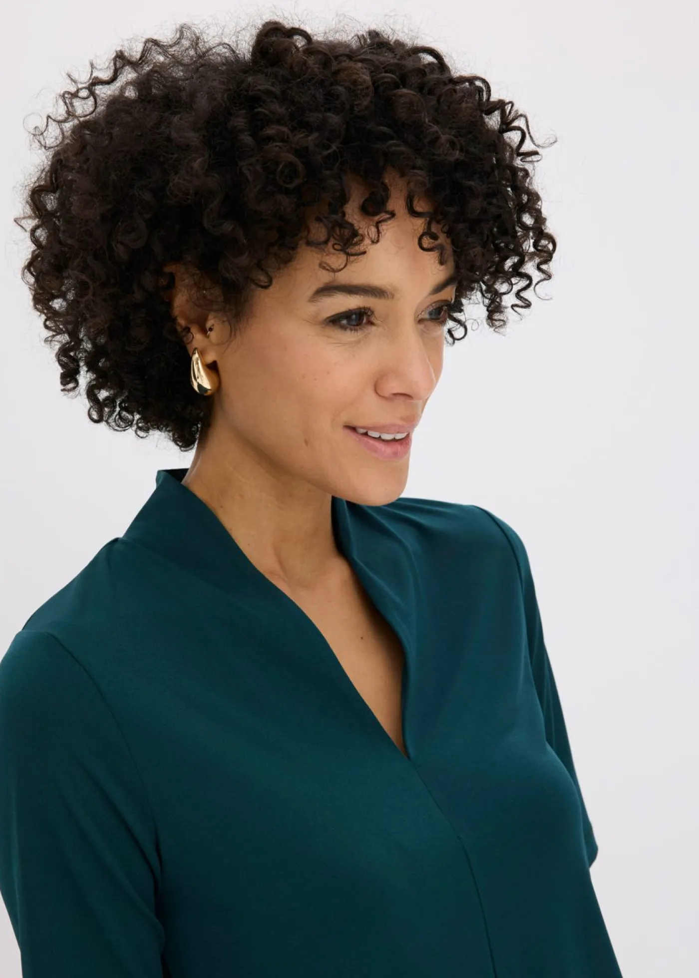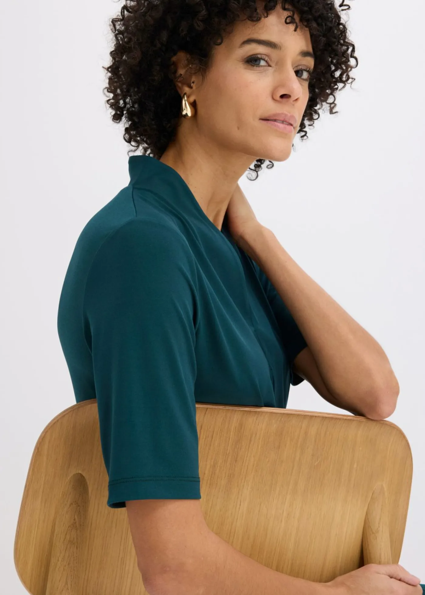 Elegante camiseta con cuello chimenea y escote en V.