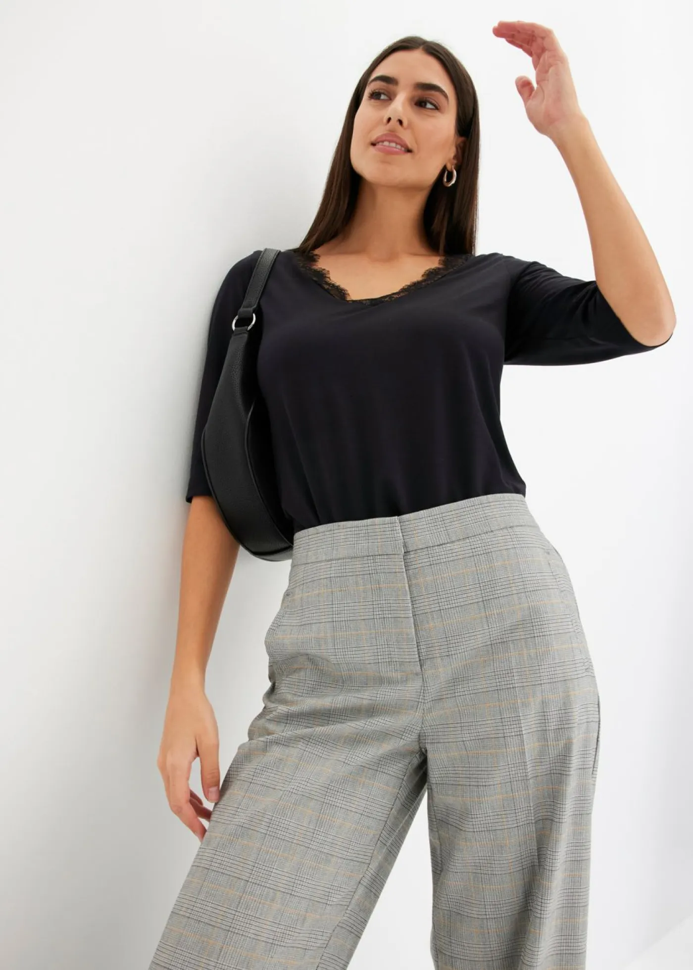 Elegante camiseta con escote en V y encaje.