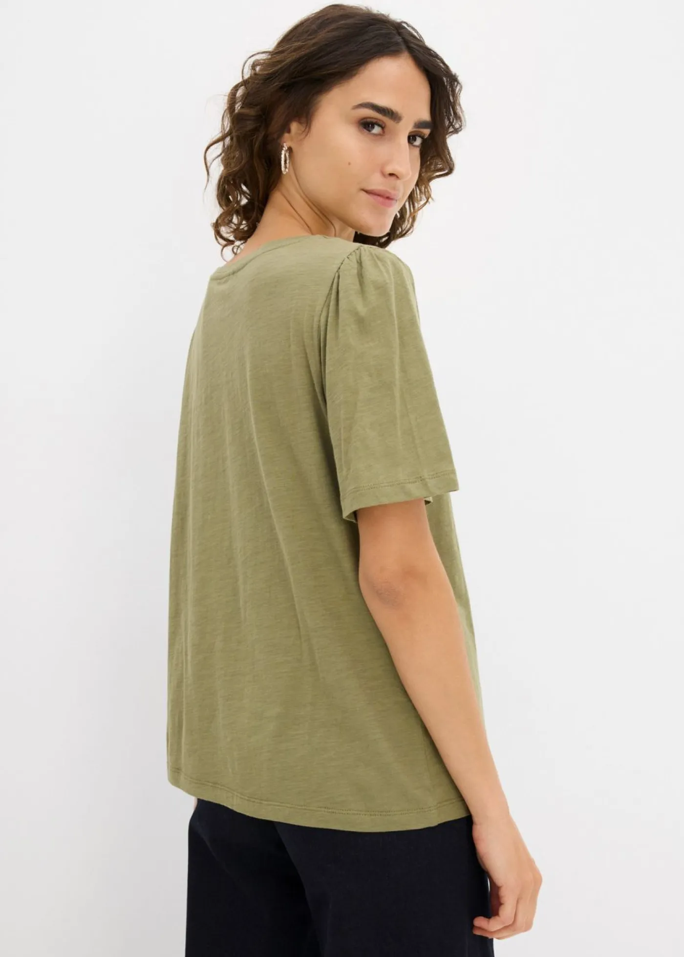 Camiseta de moda con ribete y mangas anchas.