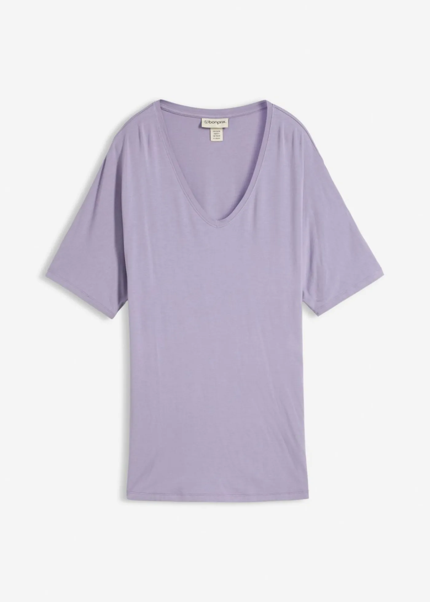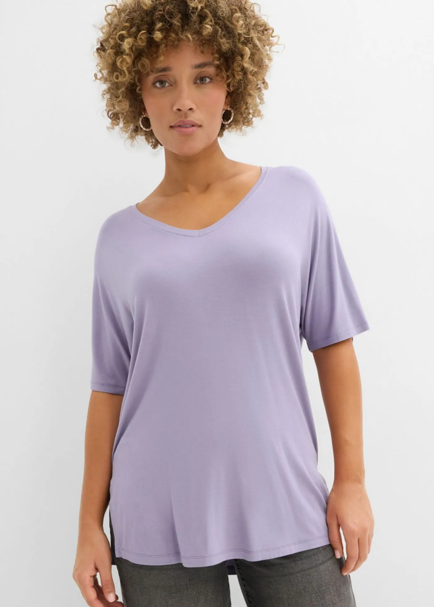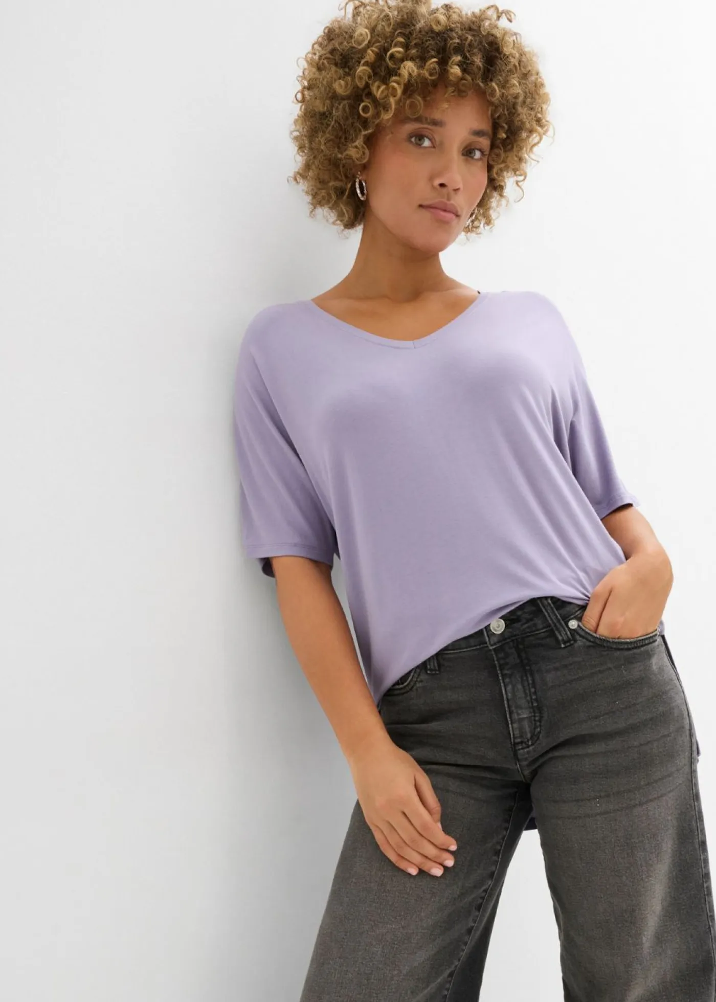 Camiseta de corte ancho con mangas de murciélago. Largo de aprox. 76 cm en talla 40/42. Se puede lavar a máquina.