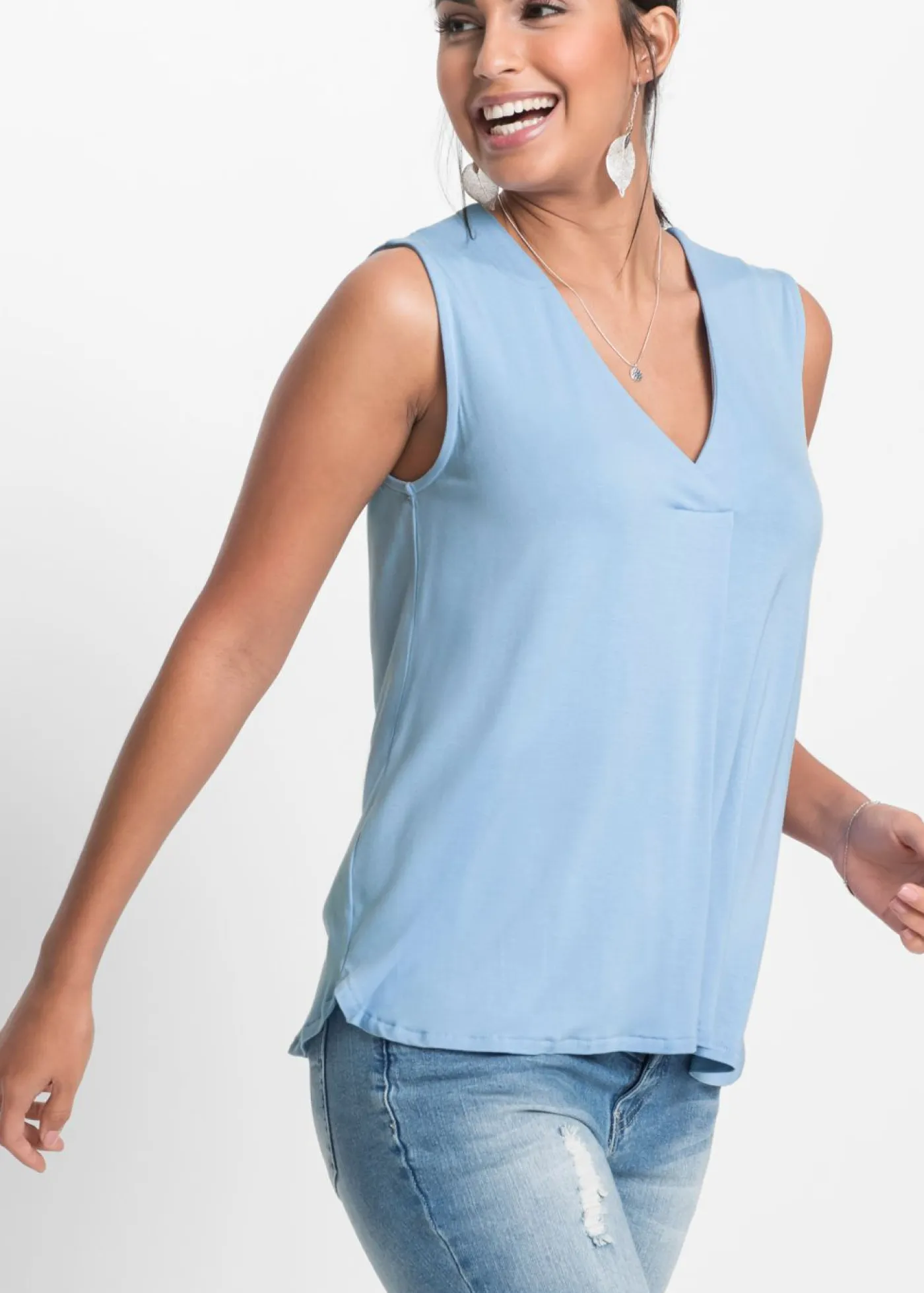 Top de buen gusto en forma de A de mezcla de viscosa suave. Top de corte holgado con escote en V, forma de A y dobladillo redondeado. Largo de aprox. 64 cm en talla 38.